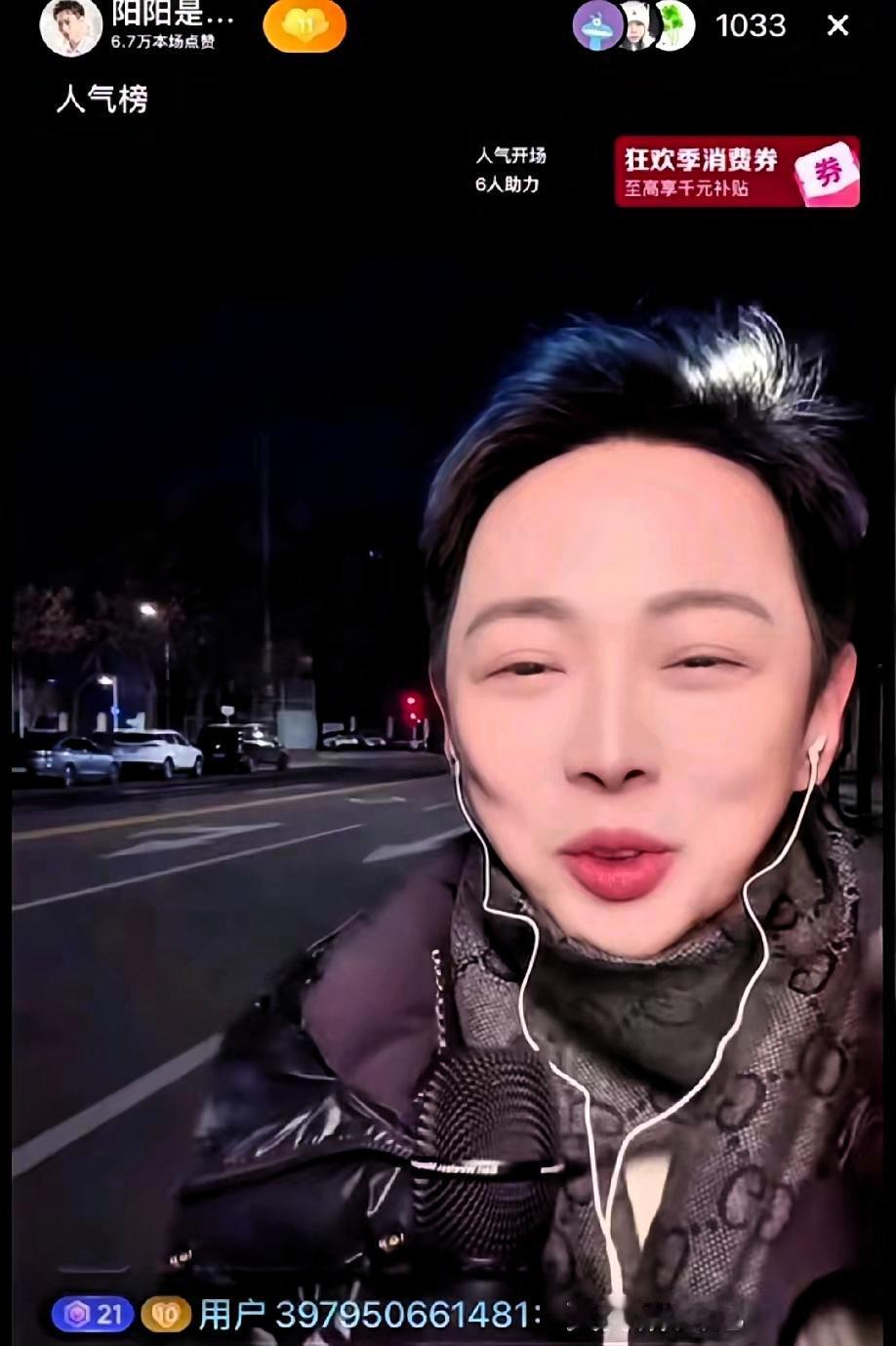 深夜了,阳阳在户外直播,很冷,没人看,太难了,突然小菲来了,刷礼物,大家都看见了