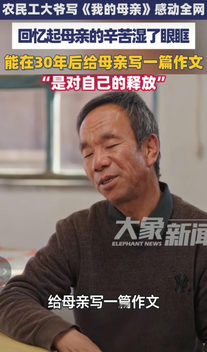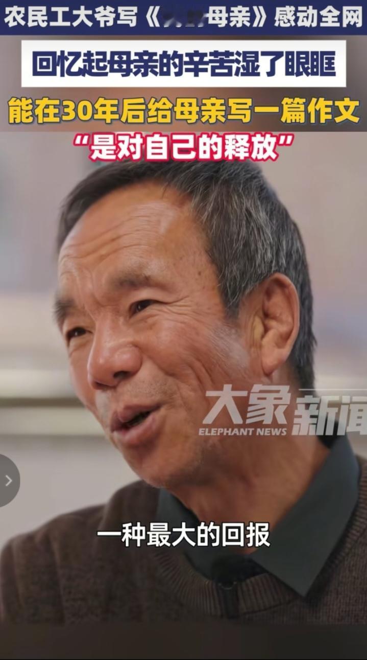 泥土里的深情,烟火中的坚守 2025年,66岁的农民工安三山因一篇《我的母亲》意外走红全网。在太原火车站旁的劳务市场,这位常年扛水泥、扎钢筋的老人,佝偻着背,用冻得皲裂的手握着笔,一字一句写下对母亲的思念。时隔三十年的深情告白,不仅戳中了千万网友的泪点,更诠释了平凡生命的厚重与纯粹。 安三山的文字没有华丽辞藻,却字字滚烫得让人鼻酸。“一大家子人围着桌子,母亲从来不上桌,她就在灶台边忙活,围裙上沾着面疙瘩,手里还攥着给弟弟妹妹擦嘴的布条。等我们都狼吞虎咽吃完了,她才瞅瞅锅里,剩下点锅底就着开水扒拉两口,要是没剩,她就摸出个干硬的窝头,蹲在门槛上啃,还骗我们说‘娘不饿,娘就爱啃这个’。”这朴实的描述,勾勒出中国亿万母亲的缩影——在清贫岁月里,把最好的都留给孩子,自己默默咽下所有苦累。而“那口烧柴火的大铁锅,死沉死沉,母亲踮着小脚端上端下,冬天里手上的冻疮裂了口子,渗着血珠,她往灶膛里添一把柴,就往手上哈一口热气,搓搓又接着干”,则让无数人瞬间红了眼眶,那份藏在烟火气里的母爱,真实得令人心疼。 “坟头上的草青了又黄,黄了又青,就像我的念想一样,一年年,总也断不了。”安三山用最朴素的比喻,诉说着跨越三十年的思念。他记得小时候发高烧,母亲背着他走了二十里山路求医,山路泥泞,母亲的布鞋陷进泥里,索性脱了鞋光脚走,脚心被石子划破,血印一路延伸到卫生院门口;他记得自己外出打工的头天晚上,母亲连夜缝了个布包,里面塞满了晒干的红薯干,又把攒了半年的几块零钱塞进他兜里,反复叮嘱“在外别亏着自己”。从被母亲呵护的孩子,到撑起家庭的父亲、爷爷,他把母亲教会的“硬气和担当”刻进骨子里,在工地上扛过的每一块砖、爬过的每一层脚手架,都是对母亲精神的传承。这份与自我人生的郑重和解,让文章超越了个人回忆,成为集体情感的共鸣。 走红后,面对网红公司抛来的橄榄枝和直播带货的邀约,安三山坚定拒绝:“我宁愿在工地上流一身汗,也不愿对着镜头说些违心的话。”这位坚守农民本分的老人,枯瘦的手指布满老茧,却攥得紧做人的底线。他的文字之所以动人,正因源于生活的真实;他的坚守之所以可贵,正因在喧嚣时代守住了本心。 安三山的故事告诉我们,最动人的情感从不需要刻意雕琢,最珍贵的品质往往藏在平凡日常里。这篇来自泥土的作文,不仅是一次迟来的告白,更是对每一份朴素亲情的致敬,让我们在浮躁中重拾对真情的敬畏与坚守。
