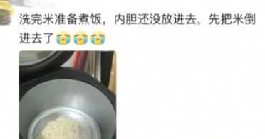 洗完米准备煮饭,内胆还没放进去,先把米倒进去了