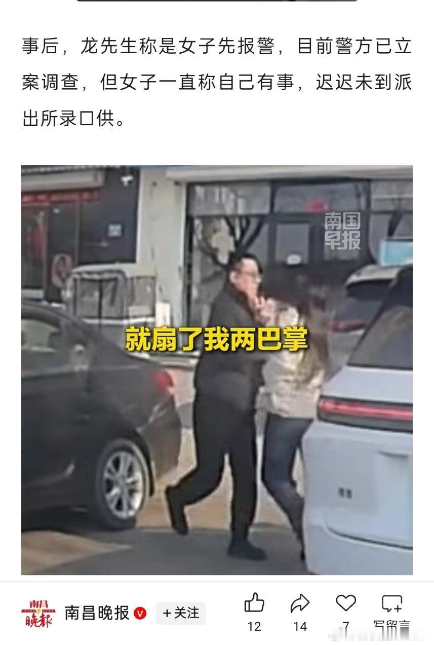 因挪车问题起纠纷女子扇男子两巴掌因挪车问题起纠纷,女子突然下车当街殴打男子两巴掌,女子打完人还报警,报警后又不肯配合去派出所录口供。这还有什么好调查的,当街打男人,直接拘留啊。