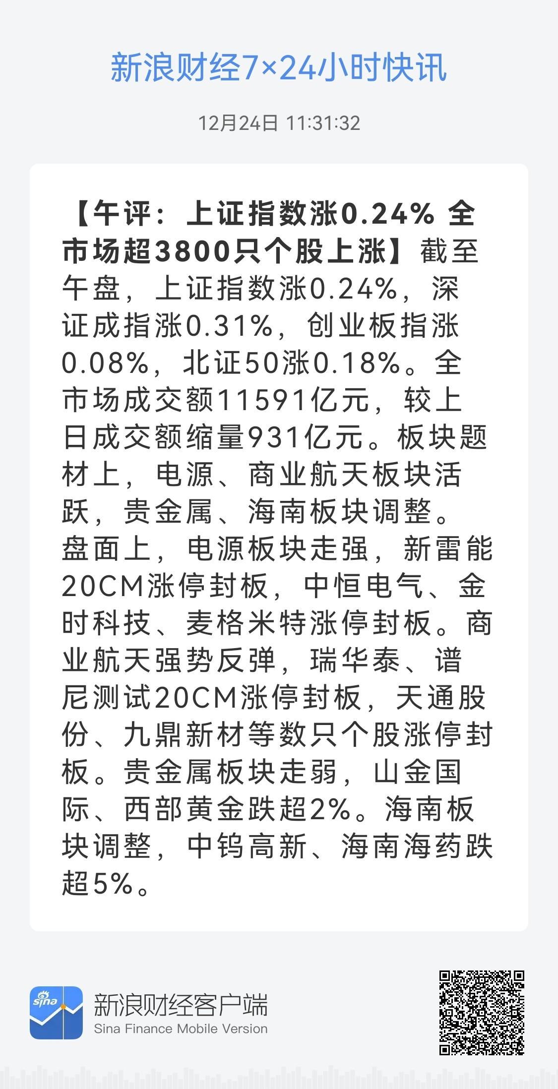 午盘印象(12月24日) 窄幅震荡 消化整固 美科技连续反弹 外部稳定支撑