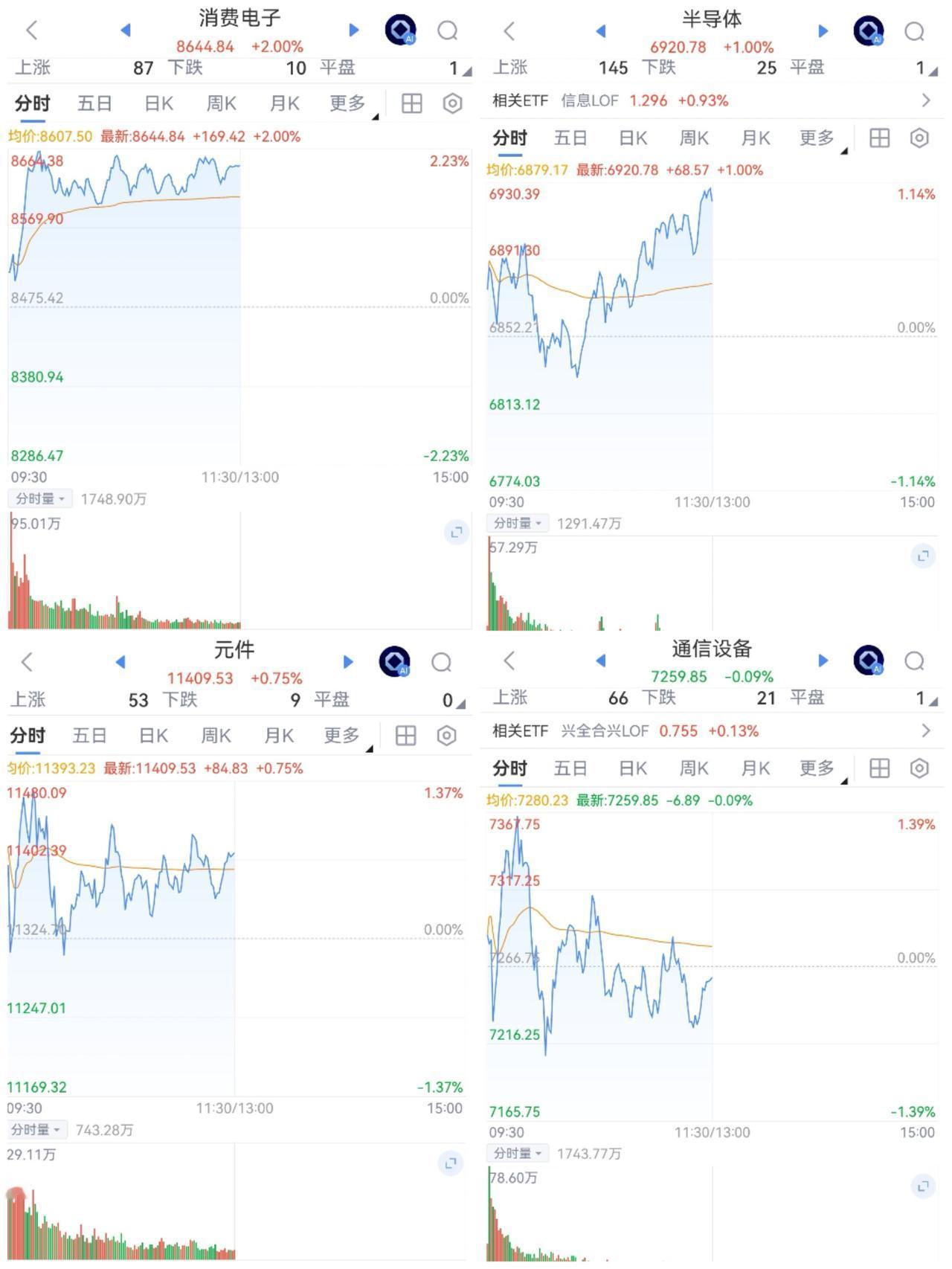 午盘印象(12月24日) 窄幅震荡 消化整固 美科技连续反弹 外部稳定支撑 科技回暖,反弹不暴力,温和走更稳 量能萎缩制约反弹高度 一、三大股指微微开红: 个股开盘涨平跌比率35%:17%:48%。 个股弱势,走平上个交易日开盘 二、指数震荡红盘: 三大指数窄幅波动 三、涨跌幅榜: 科技反弹,红利回调 跌幅前列:消费、自贸、红利 涨幅前列:航天军工、科技 四、开盘和午盘: 开盘:沪+0.01%、深+0.07%、创+0.07%。 午盘:沪+0.24%、深+0.31%、创+0.08%。 指数震荡,个股回暖,强于指数 五、午盘个股上涨71%,已超七成;与开盘相比 上涨个股大幅扩散。 资金净流入-20亿,微幅净流出,资金流大幅改善,重要关口震荡消化整理。 六、沪深两市成交量午盘11,487亿,上个交易日12,382亿,同比量能萎缩约900亿,缩量微红。 七、上证3910关口震荡整固;深小创连续反弹后也震荡,前高不远。 市场谨慎以对;寻找新领军,个股震荡 轮动则慢牛长存。 午后两种情形: 1、平行震荡整理:时间换空间,继续消化浮筹站稳3910。 2、震荡又回调:回踩也良性,上下波动拉锯,时间和空间加速统一,意在更长远。 (图片源自网络侵权告知删除)