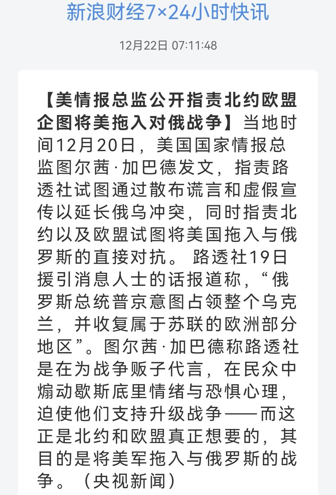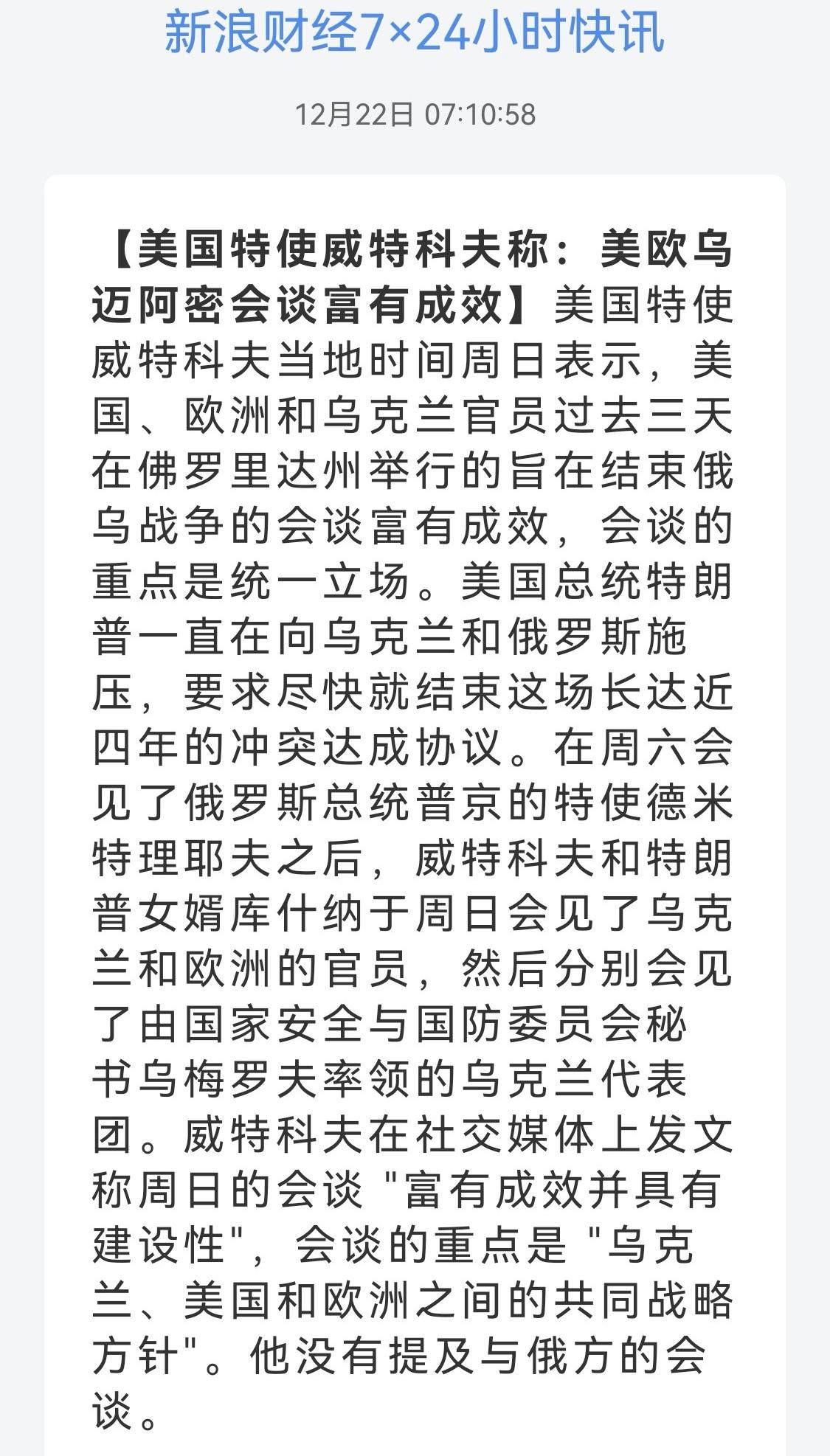 俄乌和谈进展~分歧仍巨大 乌方更无牌 美总统特使:美欧乌迈阿密会谈富有成效 美总统特使:与俄方代表举行了富有成效和建设性的会晤 俄总统代表:暗示下次俄美会谈将在莫斯科举行。 多嘴:A对B,A对C,A互相传达意见, 富有成效,双方均有部分妥协 B和C还不愿意见面,就像美方所建议的A+B+C,显示分歧依然巨大 大鹅暗示下一轮在莫斯科,显然需要请示,甚至美国特使只能直接向普京寻求“是或否”。 英美通话:英国首相与美国总统通话 讨论俄乌冲突最新进展等,斯塔默还介绍了"意愿联盟"。 多嘴:特朗普已经讨厌欧盟的口吻,你又搞了一个“意愿联盟”小圈圈,这不是公开和美国做对?破坏特朗普的诺贝尔和平奖? 这是求饶?悄悄告诉他,小圈圈还会受你控制。还是示威?你不管,我们自己也可以想办法? 欧盟:将对俄经济制裁再延长6个月,包括对贸易、金融、能源、工业、运输和奢侈品等方面的限制。 欧盟:向乌克兰拨付23亿欧元援助 美情报总监:公开指责北约欧盟企图将美拖入对俄战争。 路透社援引消息人士的话:"俄罗斯总统普京意图占领整个乌克兰,并收复属于苏联的欧洲部分地区"。 图尔茜·加巴德称路透社是在为战争贩子代言,在民众中煽动歇斯底里情绪与恐惧心理,迫使他们支持升级战争﹣﹣而这正是北约和欧盟真正想要的,其目的是将美军拖入与俄罗斯的战争。 多嘴:欧盟出钱又出力(雇佣兵或退役甚至现役军人),加上乌克兰,以乌方名义与大鹅作战。目的就是把大鹅推得远远滴,最好推到亚洲去。“东扩”、“东扩”、再“东扩”。 大鹅的战争目标就是“停止东扩”,矛盾不可调和。 欧洲打不过,但有“北约”啊,希望一不小心触发“北约第五条共同防御”,让美国打大鹅~~ 特朗普却是千方百计回避“直接参战”,所以才会这么讨厌欧盟,谈判都不让“上桌”~ 大鹅:称普京愿与马克龙展开对话, 法国总统府:欢迎 多嘴:据说马克龙最后一刻背叛了,不同意动用大鹅被冻结资金。那么普京肯定要好好招待一番~~孺子可教,谈判你也有话语权~~ 大鹅高官被刺:俄武装力量总参谋部作战训练局长遭汽车炸弹爆炸身亡 多嘴:不仅仅只是这个,还有大鹅运输船队被袭击。 背后的深层意思就是“正面战场”已经“惨不忍睹”,只能依靠“暗杀”、“偷袭”这个低烈度的小组行动。 3500亿丢失25%的土地~~ 如果继续花钱,可能继续“一败涂地”~~ 乌方可能更想结束,只不过他还想强行讨要 1)北约第五条款式的保障; 2)领土不在讨论范围 3)乌方借的钱用北约冻结大鹅的资产来偿还 第一次看到都快被打死在拳击台上了,还在叫嚣“只有你跪下我才认输”~~ (图片源自网络侵权告知删除)