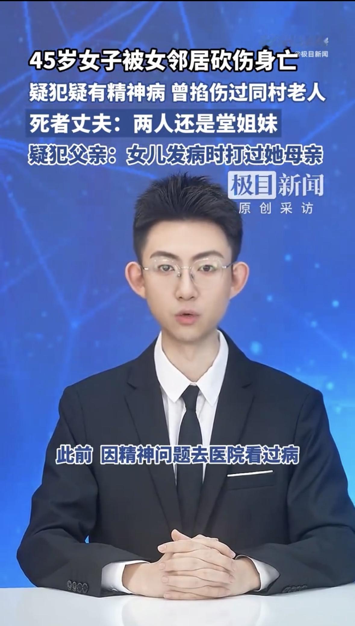 又是一起因疑似精神病酿成的血案! 受害者的老公高某在地里干完活回家,眼睁睁看着邻居黄某某拿着刀伤害自己妻子。他骨折动不了,只能嘶喊着叫村民来拉架。等大家把人拉开,妻子已经不行了。女儿才12岁,儿子刚结婚,好好一个家就这么塌了。 妻子与行凶者还是堂姐妹,一直都好好的,不知道为何突然就拿刀砍人了?她家里人上门吊唁时直掉眼泪,说不知道为什么会这样?可不能拿不知道当借口啊,毕竟有人付出了生命的代价。 这起悲剧本来是能避免的。就在前几天,黄某某刚掐过同村一位老人的脖子,老人家里人都提醒她父亲了,也让上报村里了。可结果呢?还是没有引起足够的重视,没人看住。她父亲说,女儿离婚后带着孩子回娘家,有就诊记录,发病时连自己母亲都打。 村里也说每个季度有随诊,但随诊防不住突然发病。精神状况不稳定的人,家里管不住,村里镇上看不紧,就等于把隐患留在了大家身边。 这不是第一起了。每次出事都痛心,都调查,可类似的漏洞总在重复。对待特殊群体,光靠提醒和记录远远不够,得有实实在在的跟进和兜底的措施。这不是歧视,这是对患者自己、对他们身边所有人生命的负责。 希望这次的血泪,能真正换来一些改变。别再让“没想到”变成悲剧后唯一的解释。