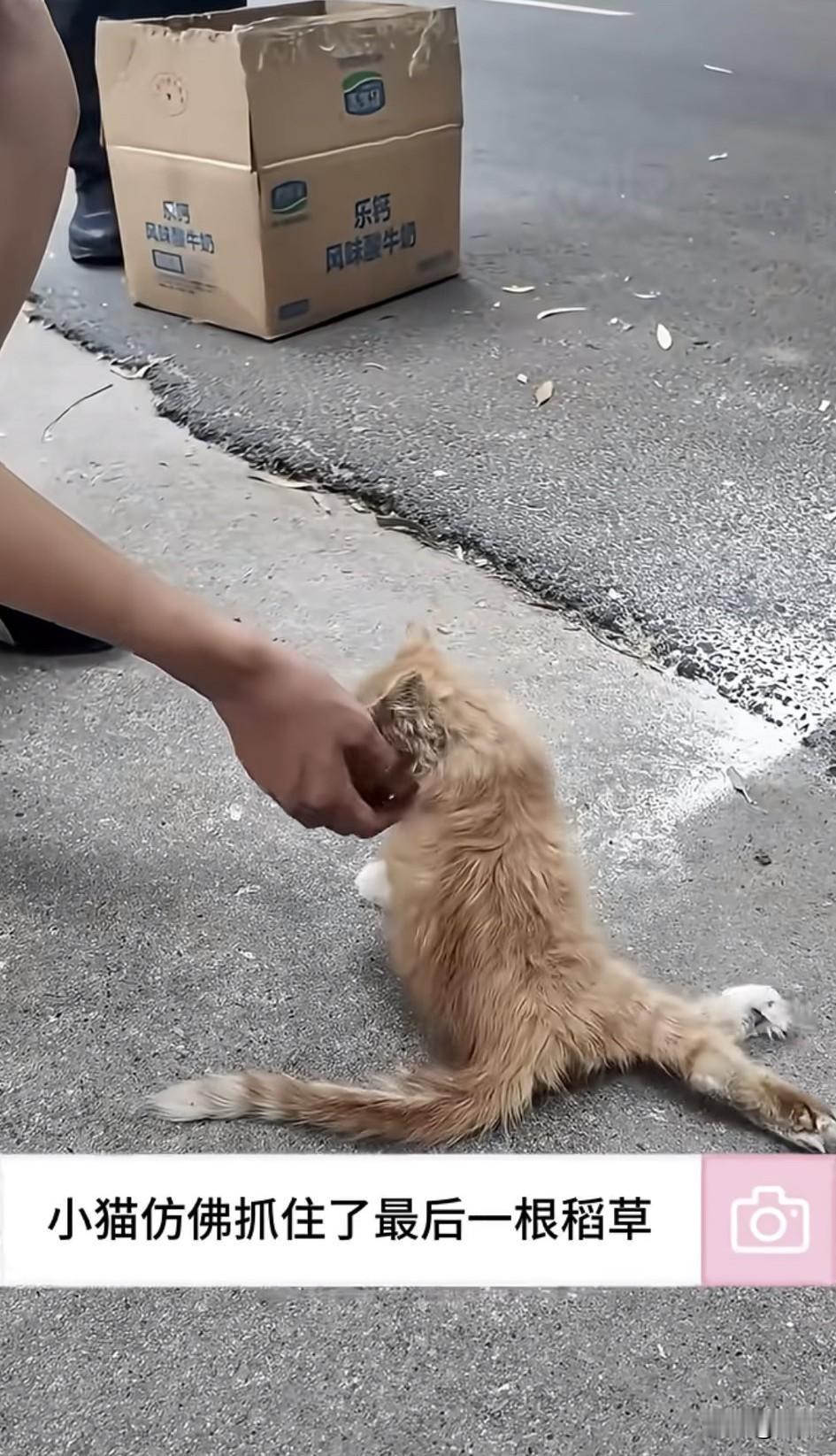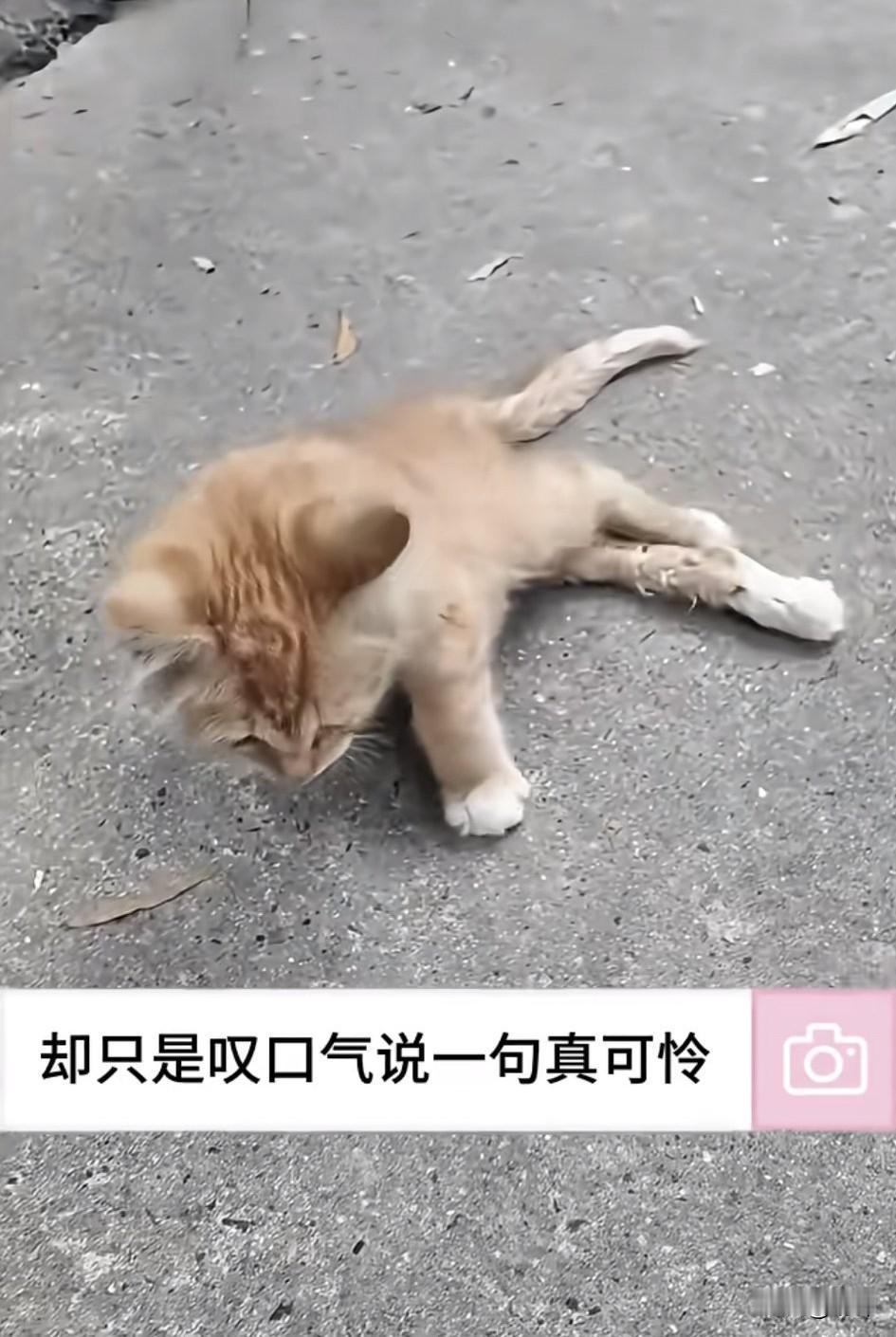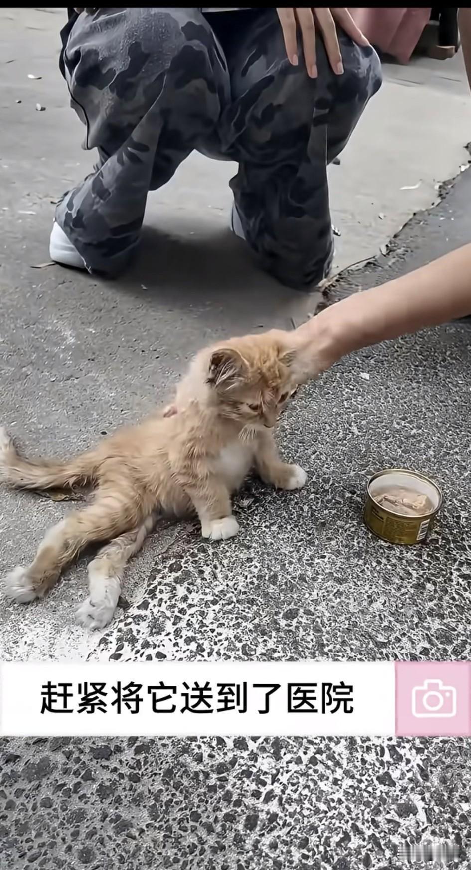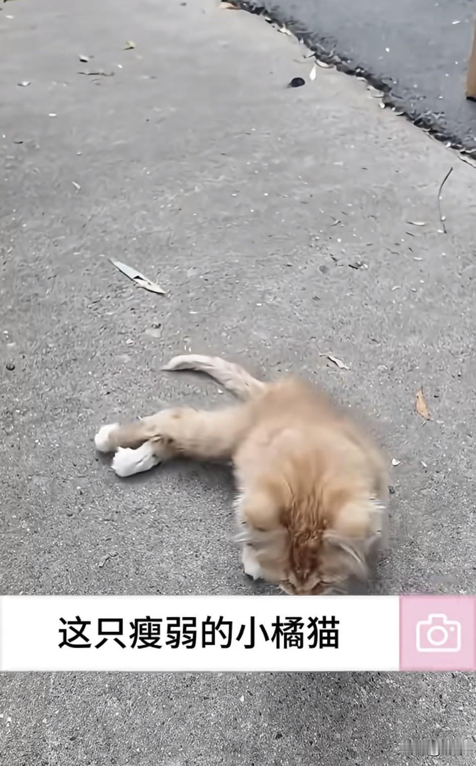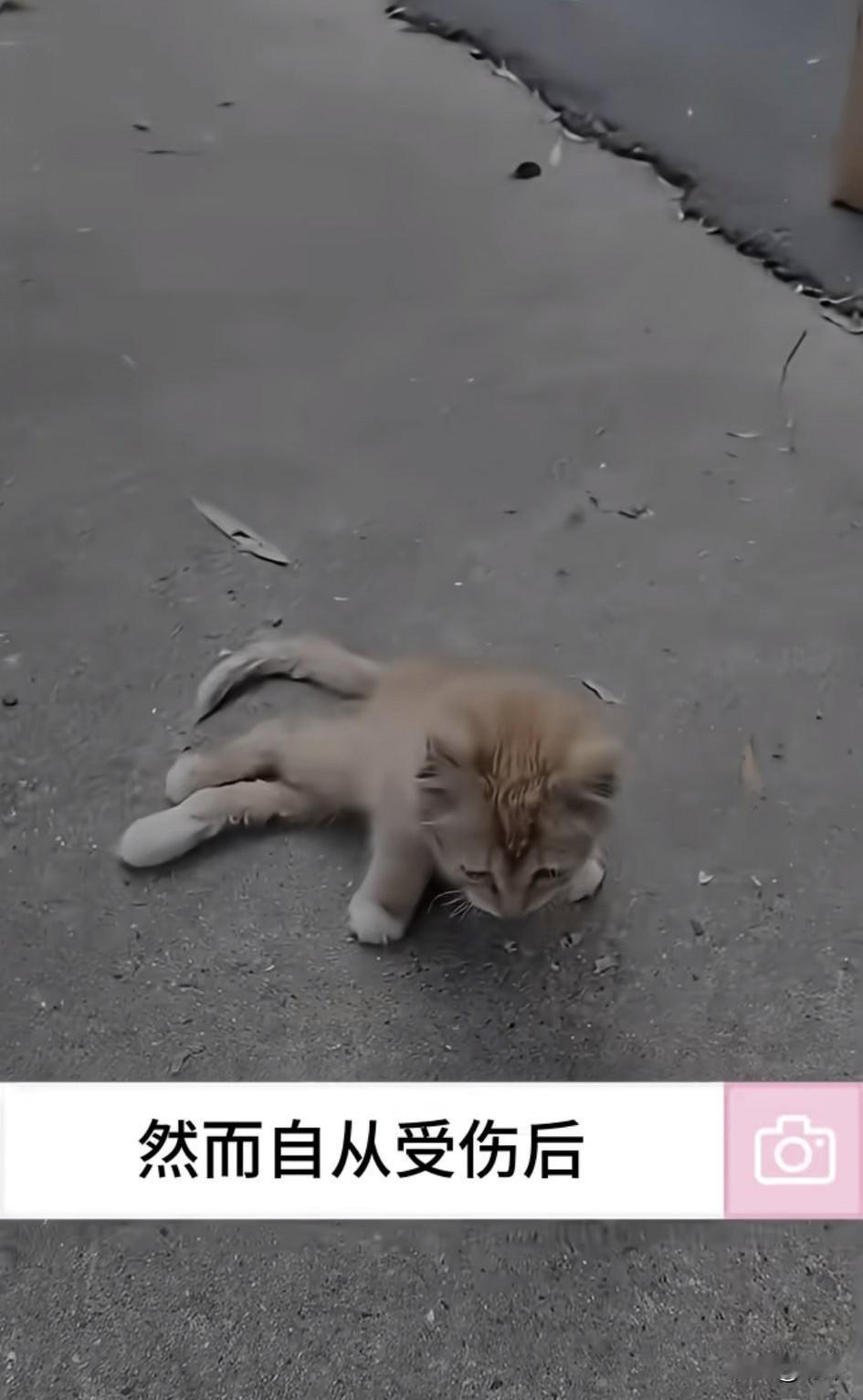 泪目了!一个四十度高温的夏天,一只残疾的流浪小橘猫拖着两条残废的后腿在滚烫的地面