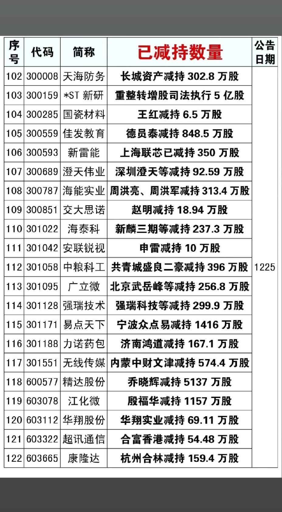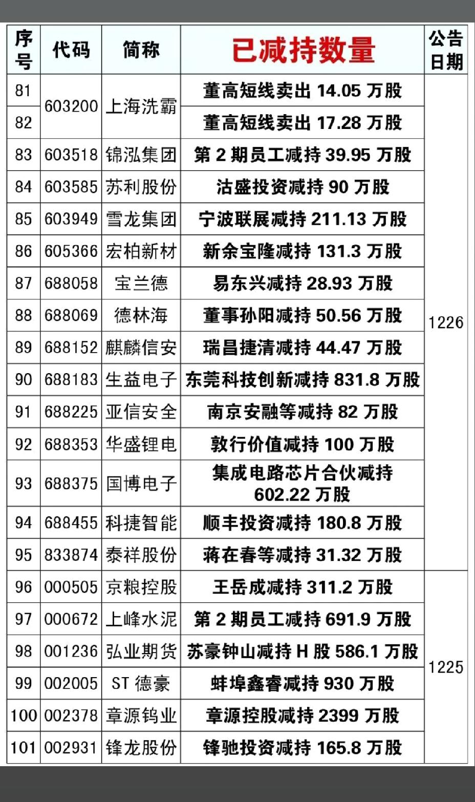 12月28日,下周A股这些股票要远离!!! 501家股东实施减持,重点关注:处置专户减持众泰汽车4163万股 ,后市需小心谨慎;二六三股东减持1375万股,后市需注意风险;基金减持福蓉科技2502万股,后市需注意风险!!!