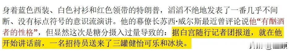 老特18分钟年终演讲前狂灌三罐可乐提神…2025年末,特朗普的年终演讲堪称一场“绝望宣泄”——仅18分钟的时长远低于常规年终演讲的1小时标准,全程照着稿子快速宣读,毫无停顿与标点节奏,满是攻击谩骂,将所有失败都归咎于拜登与非法移民。而演讲前的一个细节更暴露其内心焦灼:向来仅喝一罐健怡可乐提神的他,此次竟一口气喝下三罐,白宫随行记者直言“这背后是难以想象的压力”。 这场仓促的演讲,实则是特朗普执政11个月“一事无成”的缩影。据白宫幕僚长苏西·威尔斯爆料,特朗普任期内犯下三大致命错误:其一,一意孤行发动全球关税战,与中国交锋失利后政策反复,被民众嘲讽为“特朗普总是临阵退缩(TACO)”,直接导致物价飙升,生菜、牛肉、咖啡价格分别上涨4.2%、14.7%、18.9%,支持率从年初48%暴跌至39%;其二,违背大选承诺,公布的爱泼斯坦档案大面积涂黑关键信息,引发MAGA基本盘倒戈,甚至出现“处死司法部长”的抗议声浪;其三,用人策略极端,摒弃建制派后启用“不知名的疯狗”式官员,却未能掌控局面,还因马斯克与建制派的冲突陷入内部内耗。 如今,物价高企、民意流失、基本盘动摇的三重压力,让特朗普早已无暇顾及外部事务,年终演讲中竟未提中国与欧洲一字。这位曾吹嘘调停8场战争的总统,最终在18分钟的慌乱中,暴露了执政无方、内忧外患的真实处境。