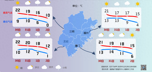 据中央气象台消息,预计12月30日至2026年1月2日,强冷空气将影响中东部大部地区,带来4~5级风,南方地区降温更为明显;30日夜间至1月1日,陕西中南部、山西南部、河南西部、湖北西部等局地有大雪或暴雪。