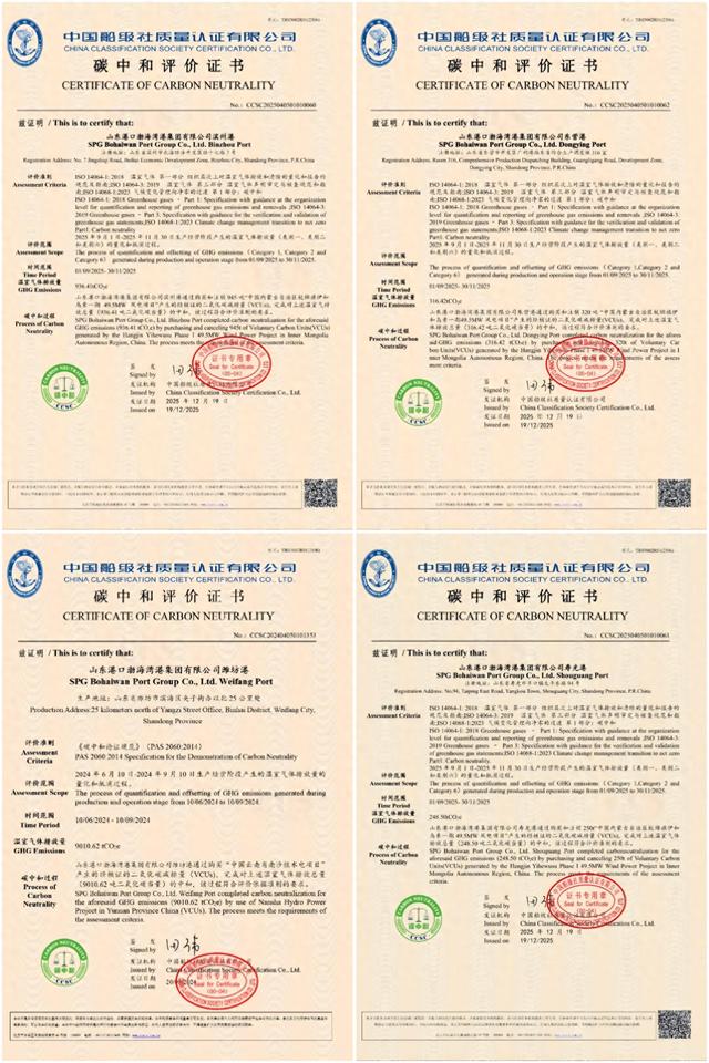 12月25日,中国船级社质量认证有限公司向山东港口渤海湾港颁发《碳中和评价证书》,标志着全国首个“零碳港口集团”正式建成。这是山东港口践行“双碳”战略、加快建设国际领先的“智慧绿色港”的重要里程碑,为全国港口行业可持续发展提供的“山东样板”。