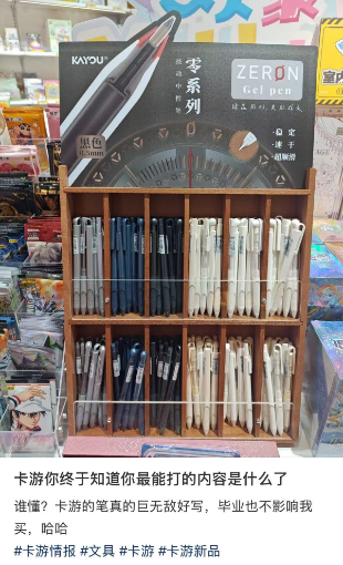 12月19日,卡游官宣了周笔畅作为旗下零系列中性笔代言人,并完善和丰富品牌形象。有意思的是,在小红书、微博等社交媒体平台,卡游中性笔早就被人频频推荐。