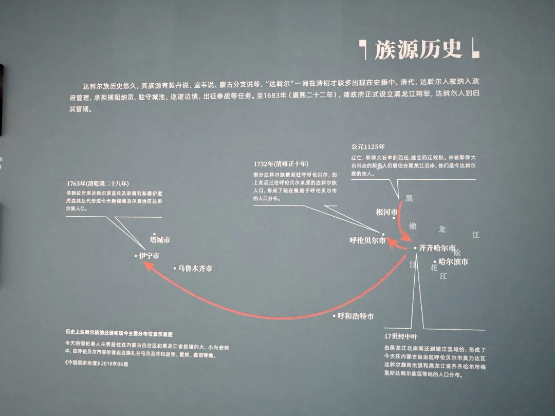 • 历史脉络:辽亡后契丹贵族库烈儿率部北迁黑龙江流域,与达斡尔族祖先传说及分布吻合;清代文献将契丹“大贺氏”与“达斡尔”关联,《呼兰府志》明确记载“达斡尔,本契丹种”。