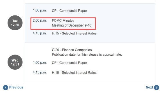 本周三3:00,美联储将公布12月货币政策会议纪要,这是本周最值得关注的热点事件。美联储12月11日公布了12月份的利率决议结果,宣布降息25基点,联邦基金利率下降至3.5~3.75%,符合市场预期。这是美联储年底第三次连续降息。数据公布当日,美元指数从开盘价99.21点暴跌至收盘价98.56点,次日延续暴跌走势。美联储降息的决定对行情面冲击明显。本次会议纪要发布,将再度挑动市场神经,可能导致美元指数继续走弱。上周是圣诞周,本周是元旦周,美联储官员和其他高官因为节日原因很少进行公开讲话。美联储会议纪要成为近两周唯一能够研判美联储货币政策走向的依据,其重要性不言而喻。
