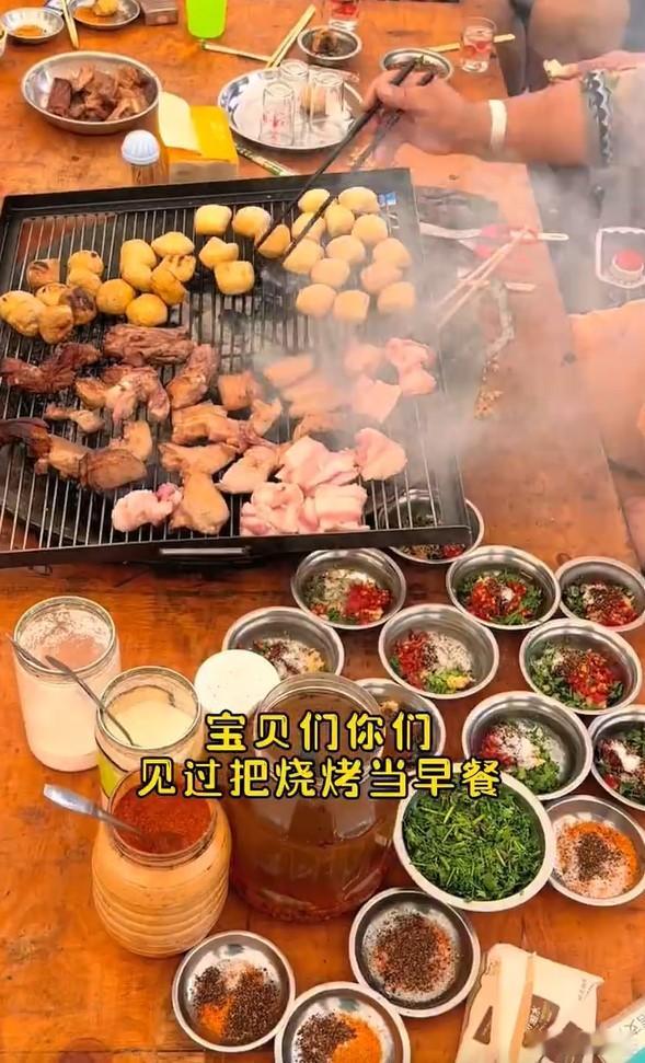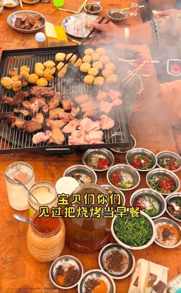 烧烤早市 早市的烧烤摊藏着最接地气的快乐!新鲜的食材、浓郁的酱料,炭火烤出来的肉串带着独特的焦香,路过的人都会忍不住停下脚步买上几串!