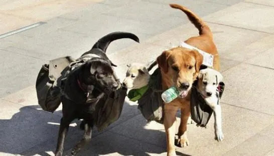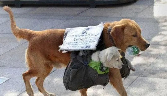 大狗背着两只小狗,还有纸牌,看到内容后,人们都愣住了街上,有一只大狗背着两只小狗,走来走去,背上还有一张纸牌,在狗的背上显得像广告那么大,路人看到纸牌都愣住了,原来是狗狗要把自己卖掉,价格是1500元,给主人减轻负担,人们给它喂食,给它水喝,就是可怜这个毛孩子了,什么也不懂,不过这价格,很少有人接受啊!