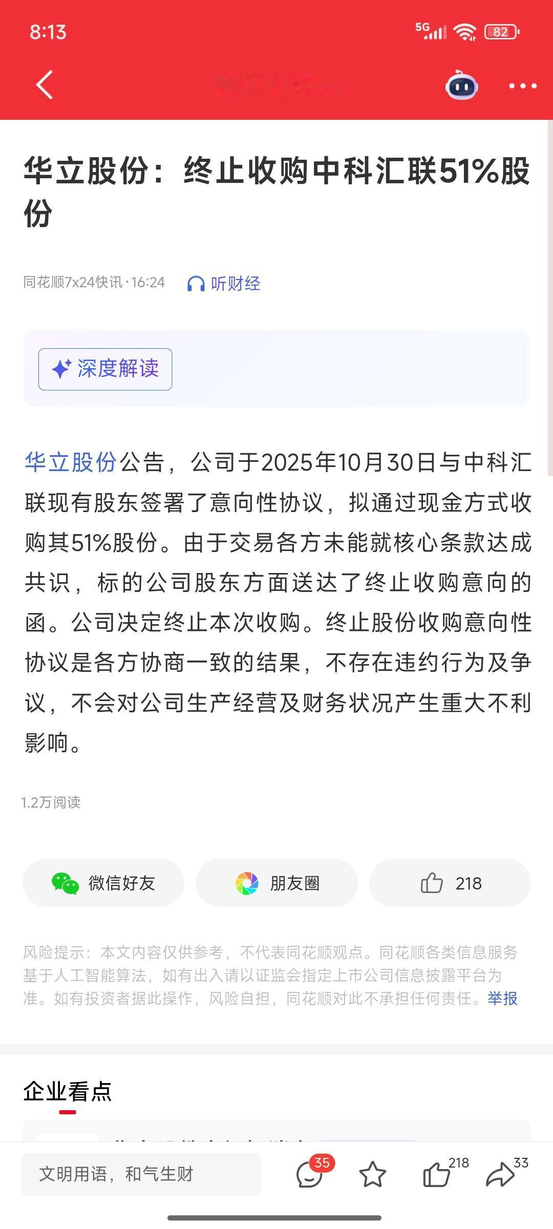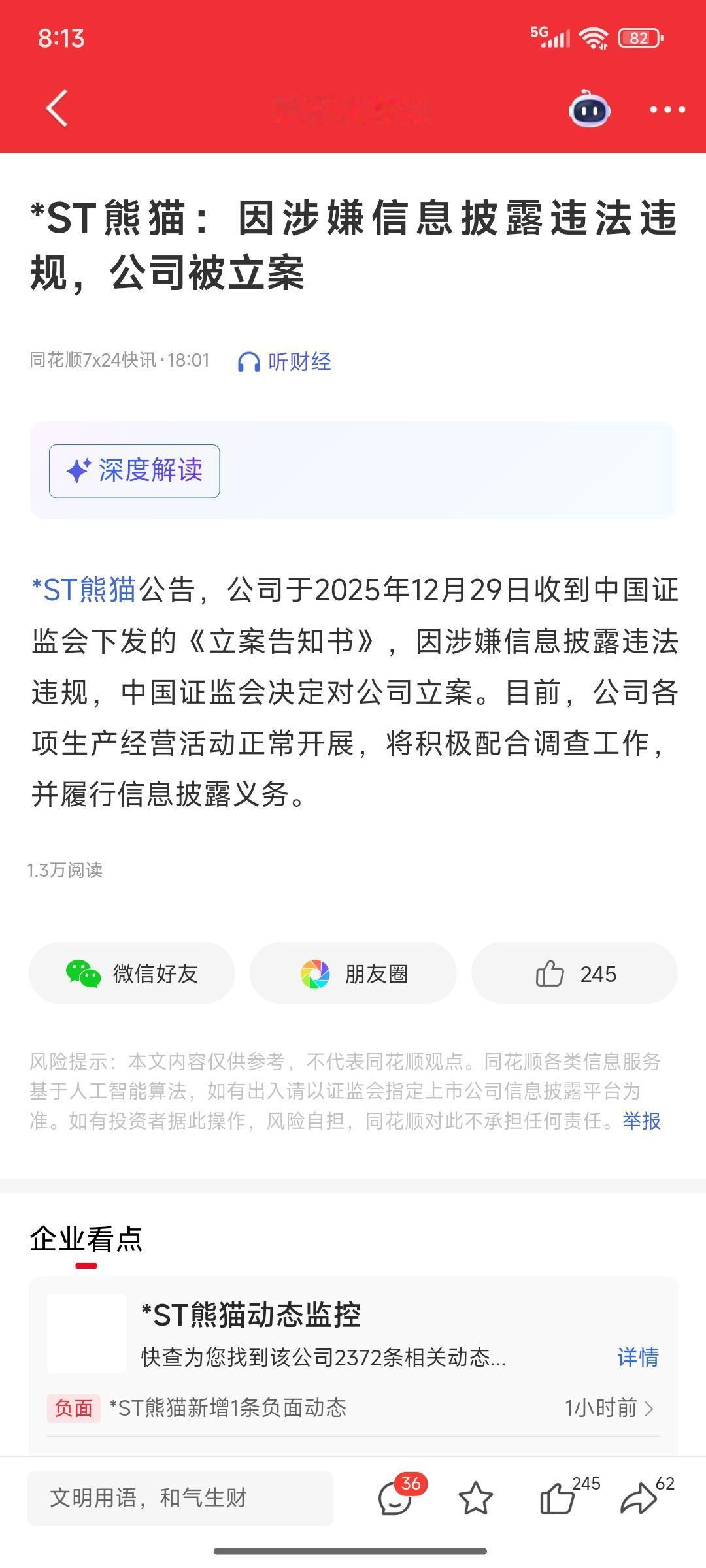 人倒霉起来喝凉水都塞牙 6.76万股东明天要吃大面了 天箭科技:预计2025年度净利润为负且营业收入低于3亿元 可能被实施退市风险警示。 华立股份:终止收购中科汇联51%股份。 *ST熊猫:因涉嫌信息披露违法违规,公司被立案。 有持仓的朋友,心里估计要飙脏话了,拿了这么久钱没赚到,结果等来了利空,一碗大面盖到头上。所以说做长期的股友,一定要看行业新闻,对个股基本面也要熟悉,很多坑都是可以避开的。