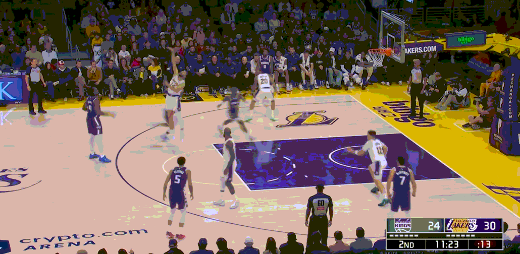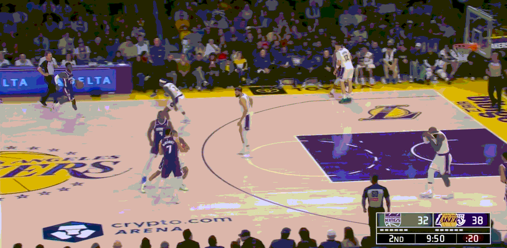 换防沟通有进步,至少执行既定策略不会换乱了,轮转也要好一些,会出错但会尽力补了。(P1-P4)防双掩护,第一个掩护的防守人知道出击接管,虽然还是慢了点。(P5)上半场一直被德罗赞痛抓换防软肋,第二节末竟然用了平常很难见的延误和夹击,下场看看是德彪的十几年的防守习惯还是湖人上一个暂停的指挥。(P6、P7)