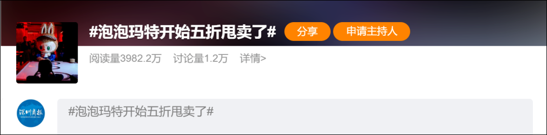 12月29日,“泡泡玛特开始5折甩卖了”词条登上微博热搜。
