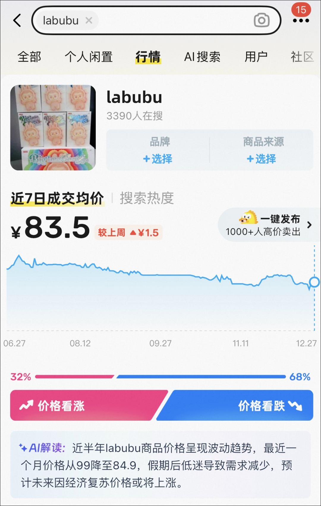 价格的变化迅速改写了预期。记者看到,有黄牛在社交平台发帖称,“暂缓收购Labubu系列”;在闲鱼上,部分普通款已低于发售价;就连消费者也受此影响,在社交平台评论称,如果所有款式都低于原价,那就直接买自己喜欢的,不再纠结抽盒。