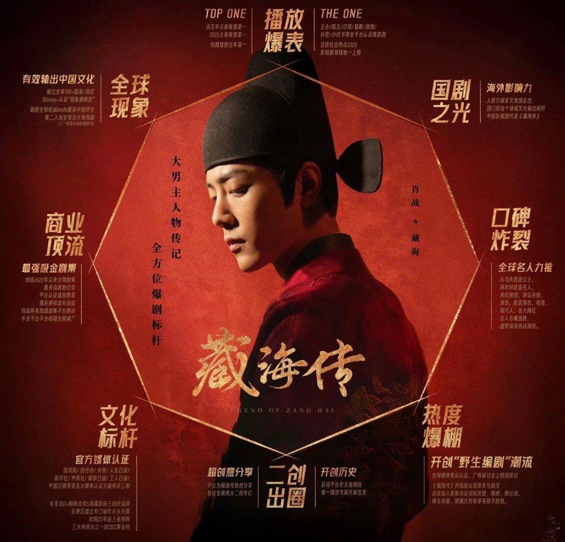 要知道藏海传是史上唯一九榜官方全认证爆剧,三大平台年冠,爆得最无可争议的唯一剧王,这个剧已经是国剧之光,现象级大爆剧,掀起全民追剧热潮了,肖战真的是八边形大满贯,太牛了。。藏海传恭喜藏海传