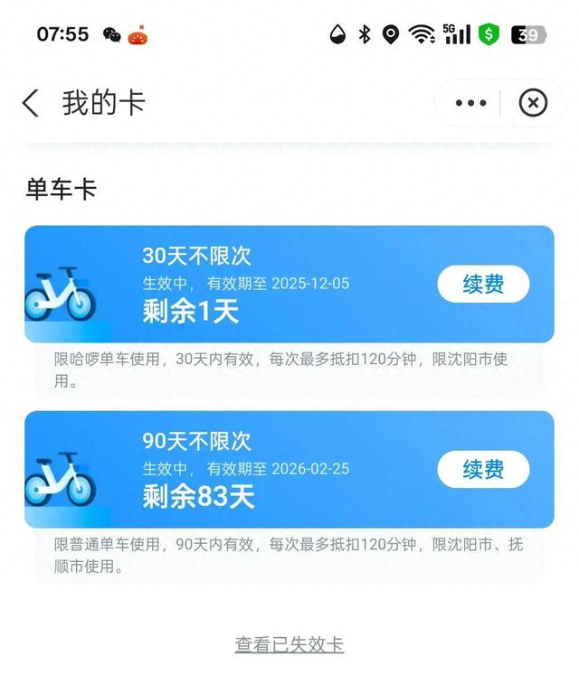 然而在11月5日,情况发生了变化。王先生在旧卡过期前一个月购买了一张120天的新卡。但在购买后,他惊讶地发现,尚未到期的旧卡和新卡竟同时处于启用状态,两张骑行卡被重复计费。发现问题当天,王先生便立刻联系客服申请退卡。