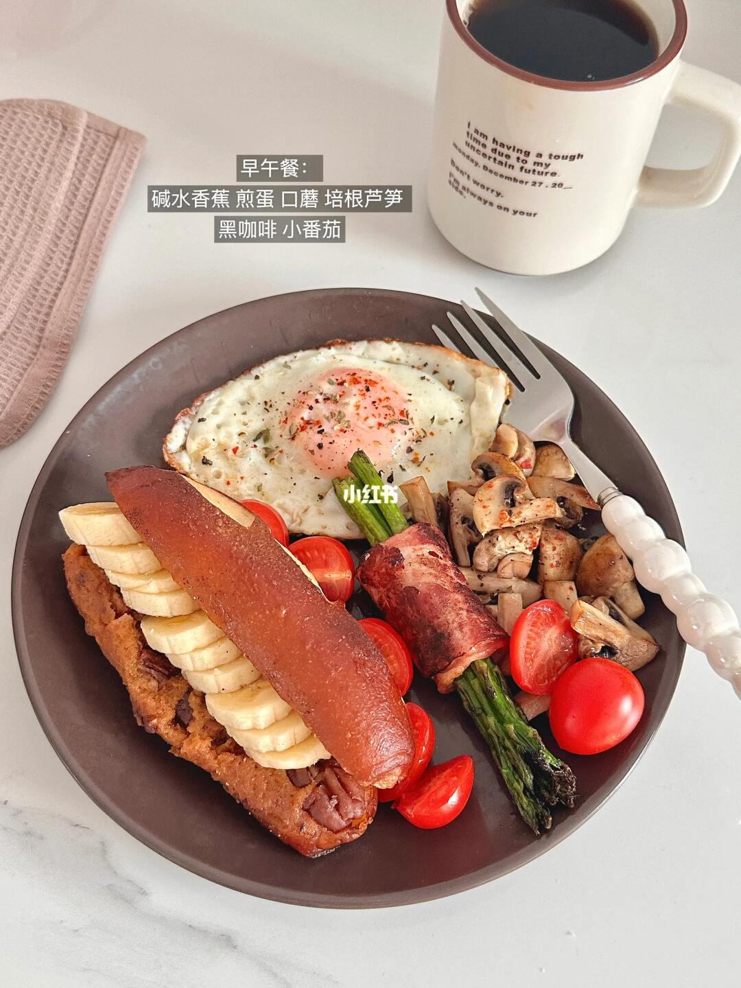 近日体重90斤 目标80斤 - 早午餐:碱水➕香蕉➕煎蛋➕黑咖啡➕口蘑➕芦笋培根🥓➕番茄 加:黑芝麻碱水➕椰皇拿铁 晚:凉拌菜➕西梅汁 喝水2000ml 运动🈚 💭今日碎碎念: 坠近又迷上碱水包了,又买了一批新🍞包,早上吃到喜欢的面包真的好满足呀!一天都不馋!