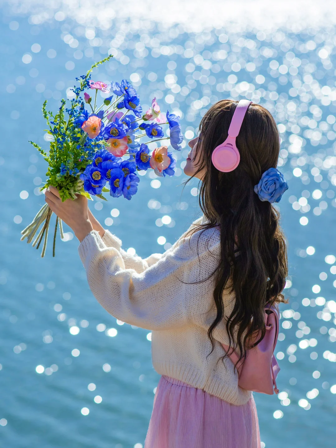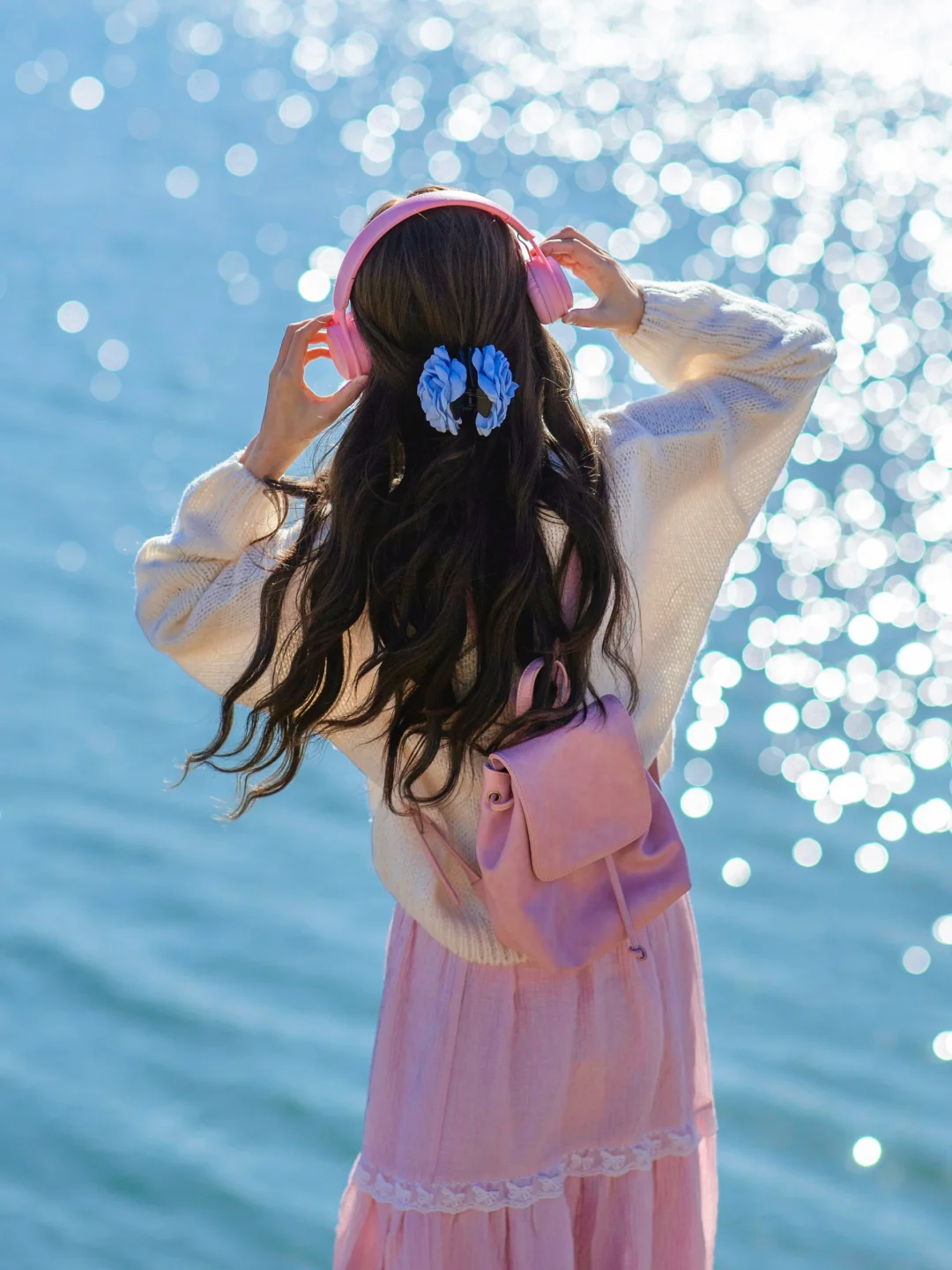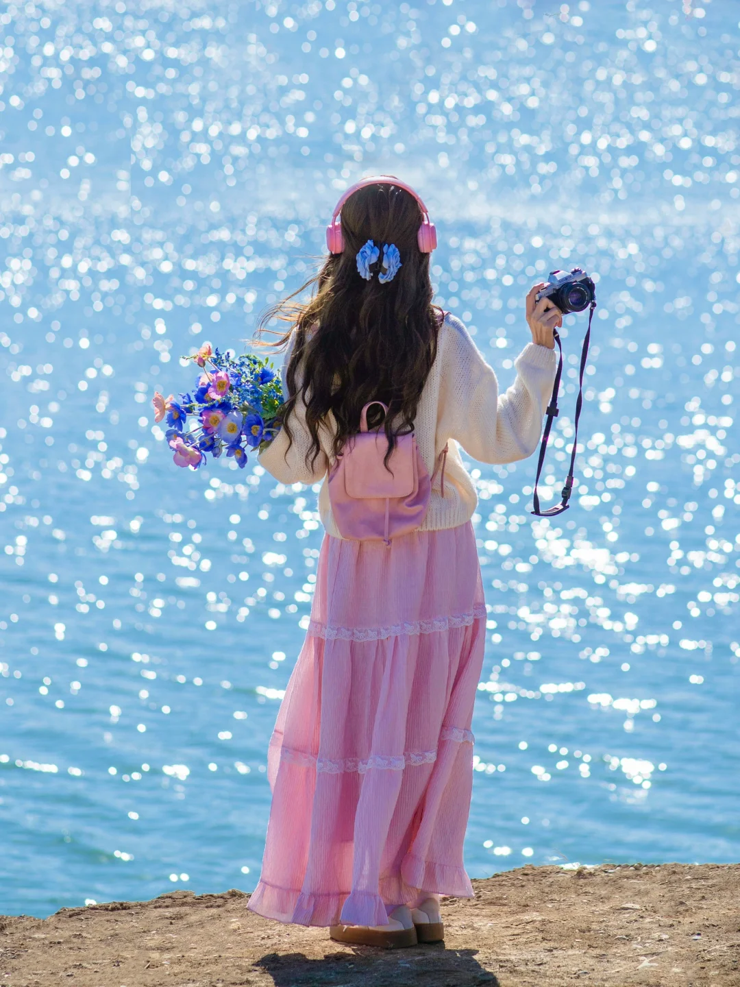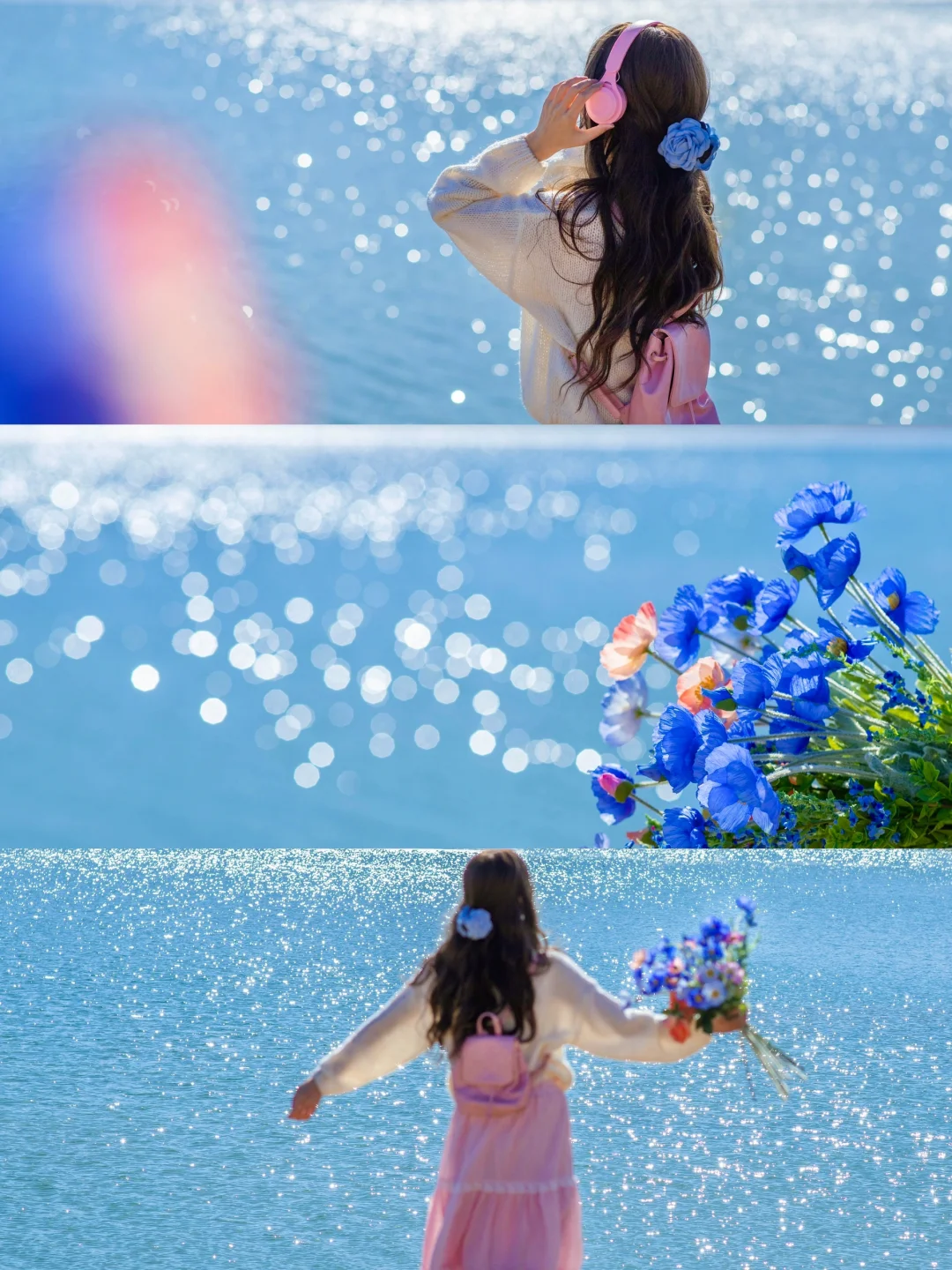 ☀️选择晴天拍摄,下午2点左右阳光正好的时候,清透的蓝色湖面在春风吹佛下波光粼粼非常治愈。