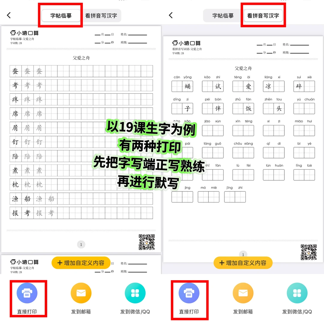 内容同步课本,有字帖临摹的打印,也有看拼音写词语的默写打印。相信我们家长都想让孩子更快掌握生字词,每课打印两页练习,既可以锻炼孩子的书写,把字写端正,还可以熟记生字词,达到双重效果。