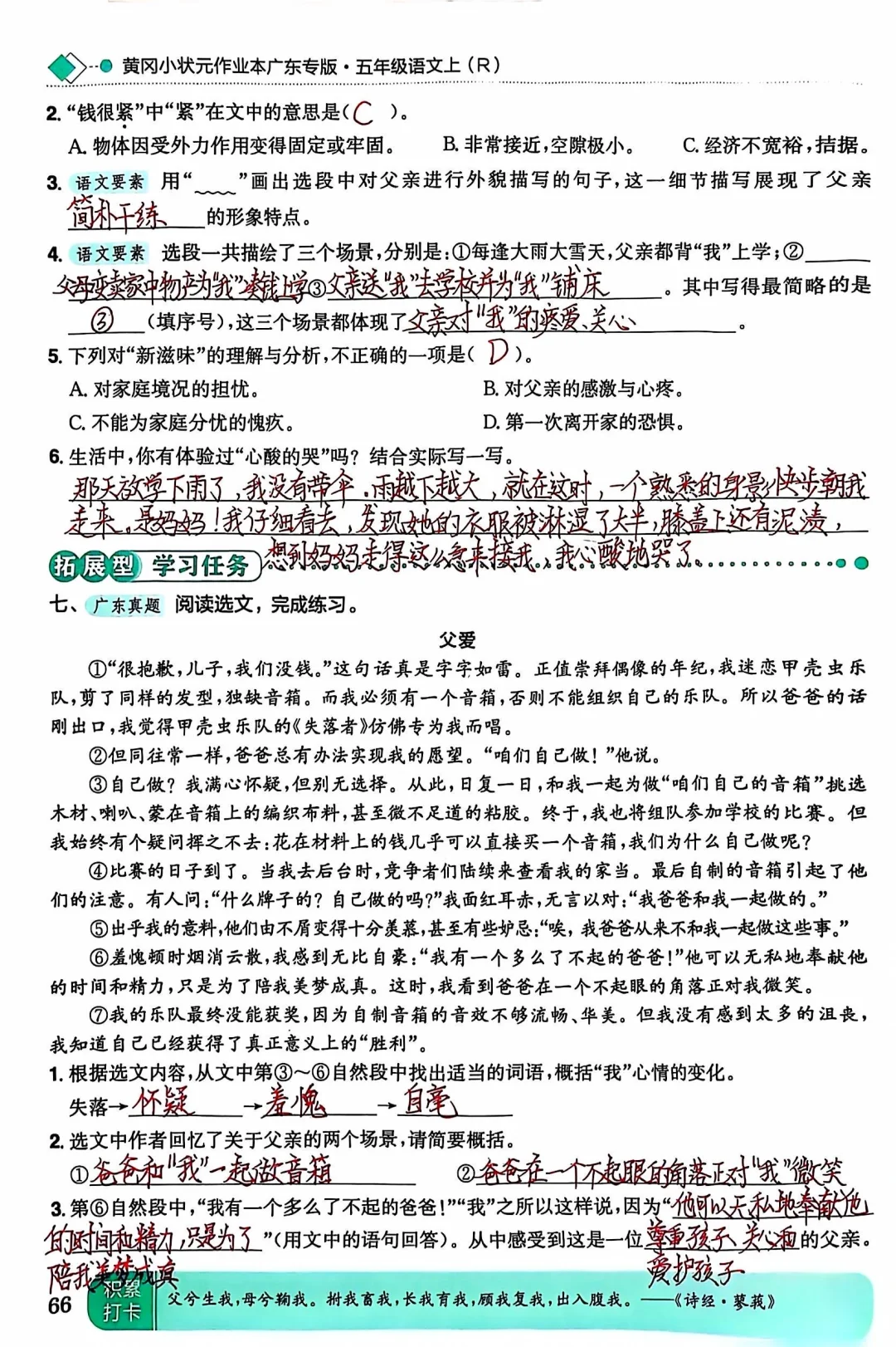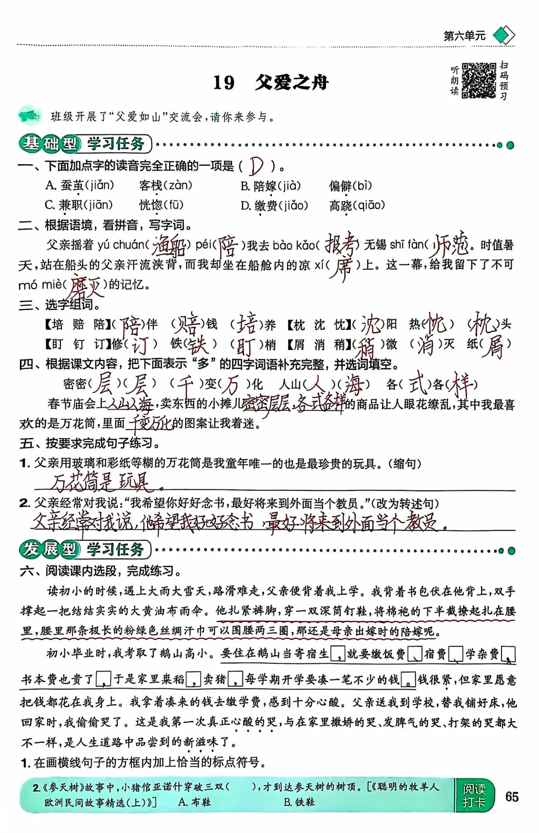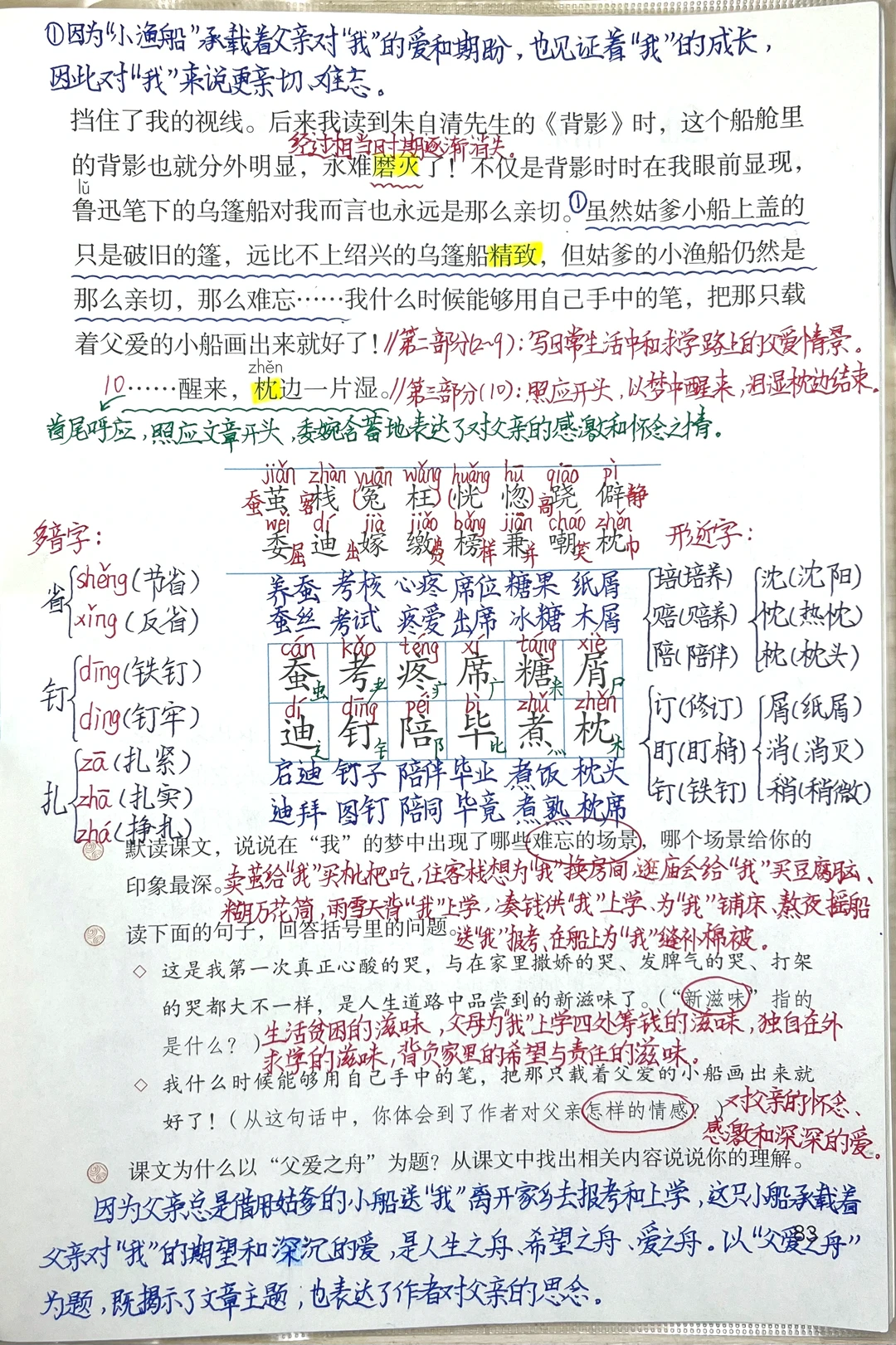 小猿口算小学语文口算辅导作业学习软件五年级父爱之舟父爱之舟课堂笔记吴冠中父爱之舟