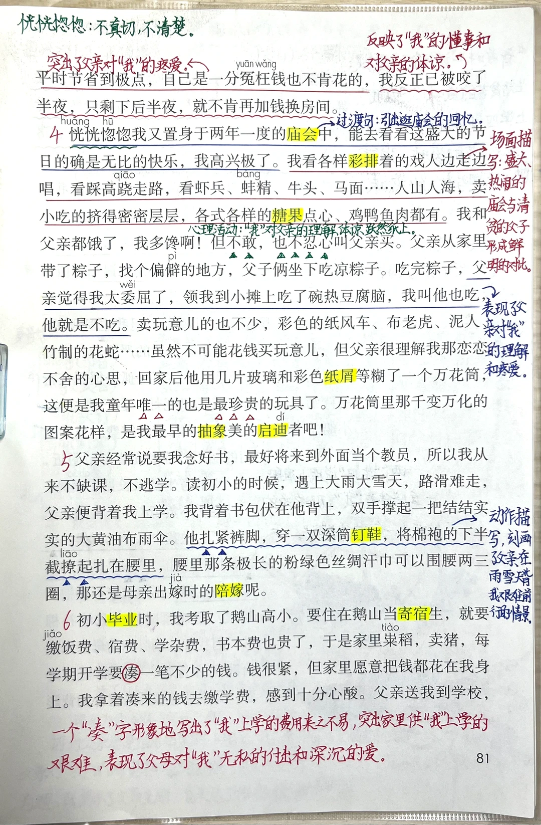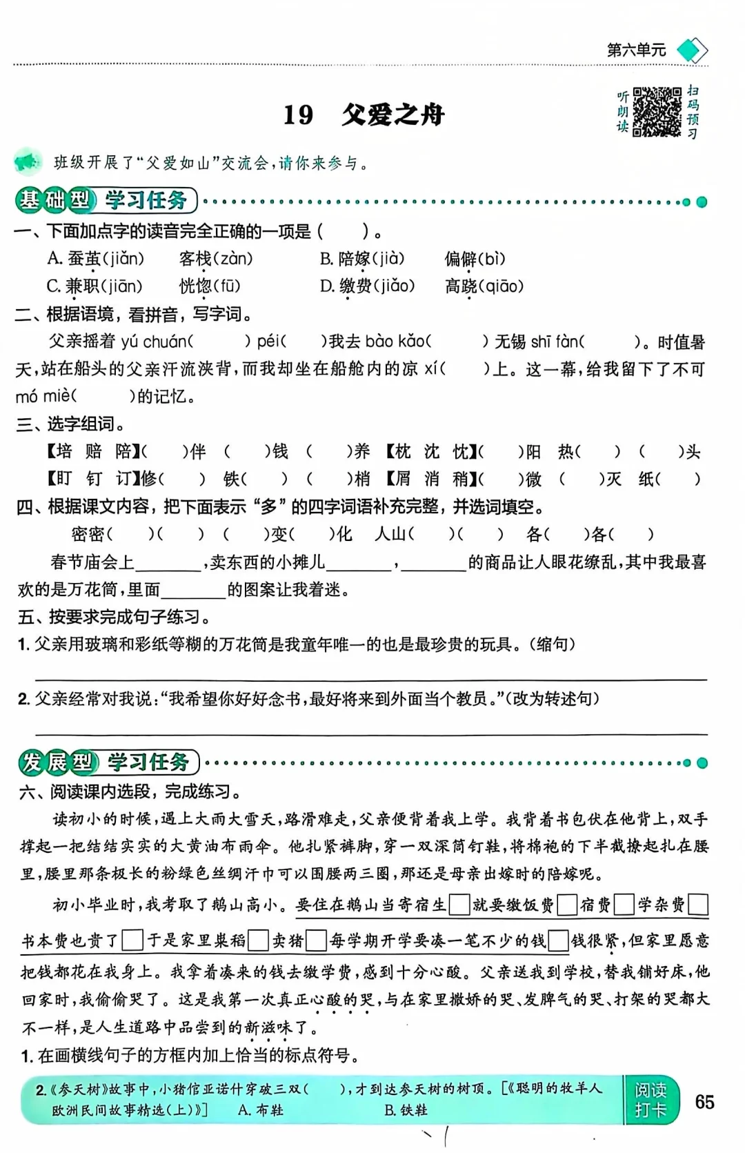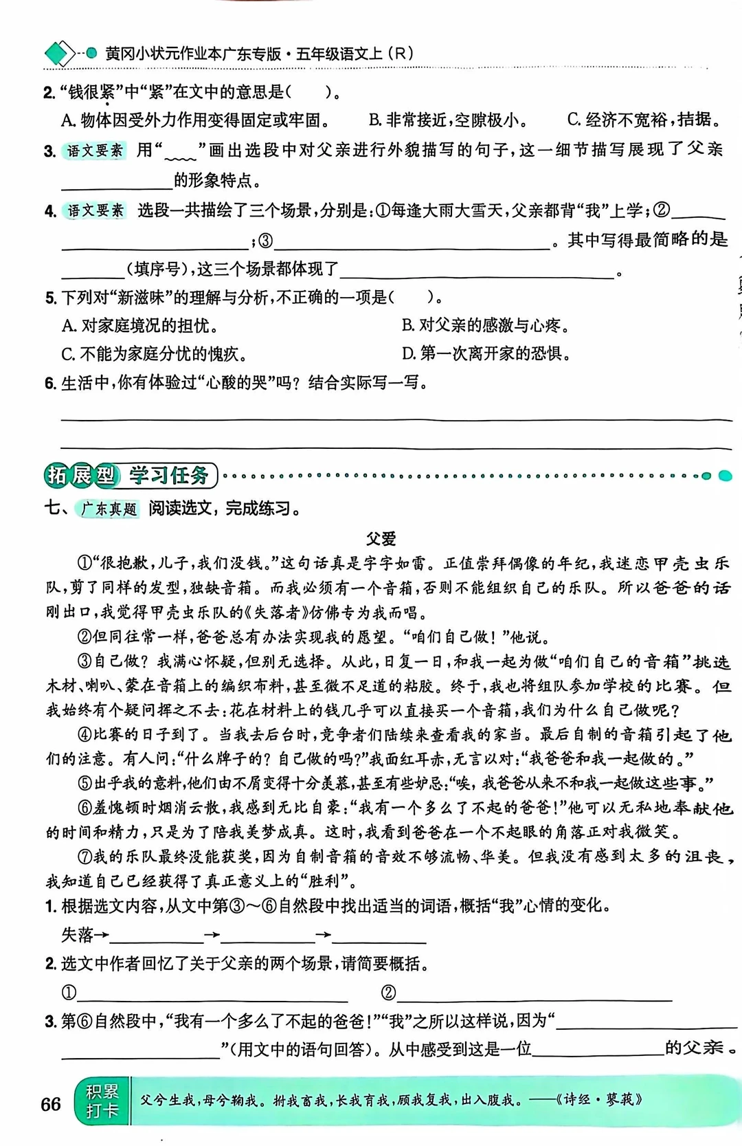 小猿口算小学语文口算辅导作业学习软件五年级父爱之舟父爱之舟课堂笔记吴冠中父爱之舟