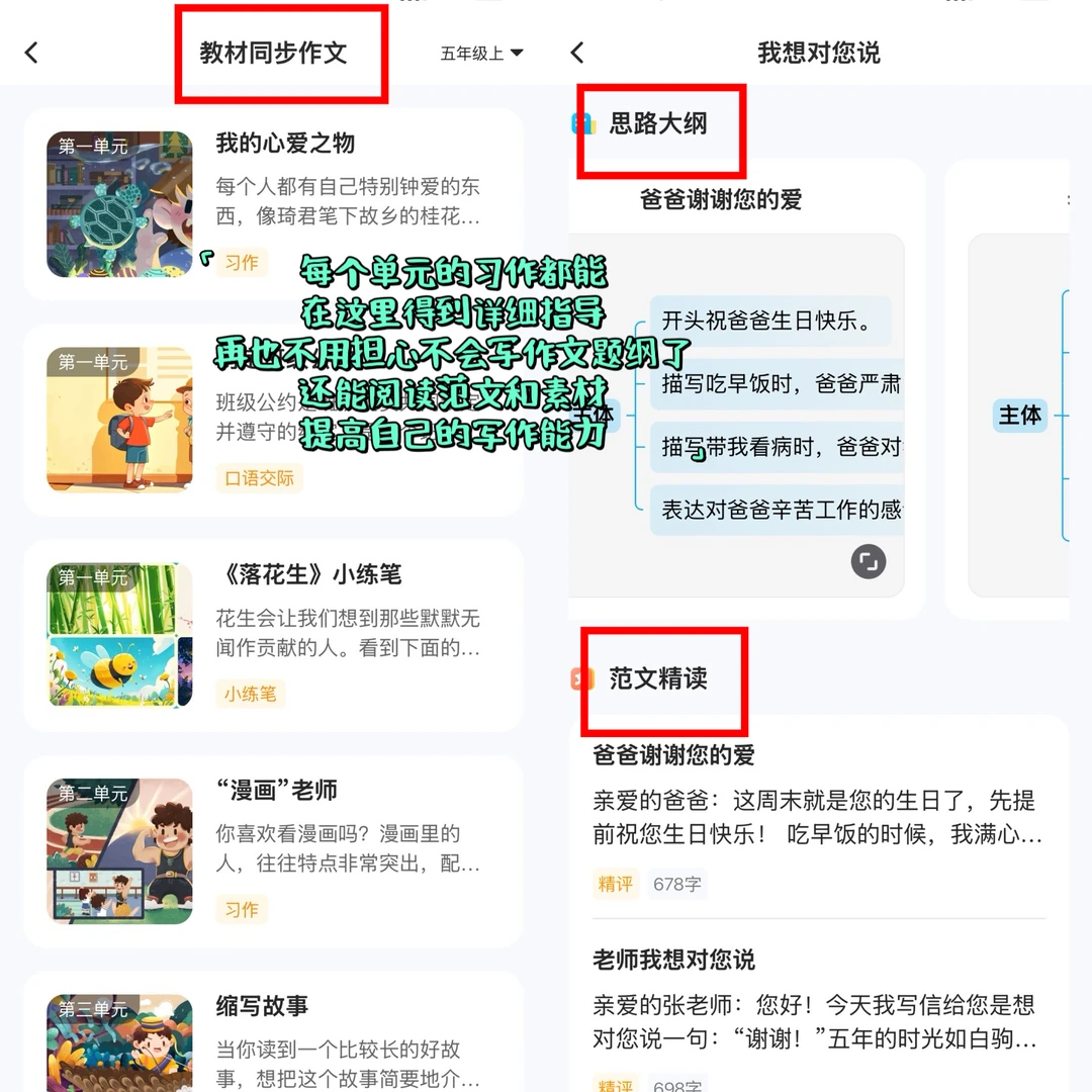 小猿口算除了字词的学习功能以外,还有“同步作文”这个强大功能,好多同学一看到要写作文就皱眉,其实写作是一件很有趣的事情,只要找对方法,就不是难事了。小猿口算同步课文内容,每个单元的作文详解都在里面,不仅有作文素材积累,还有很多优秀范文,让孩子坚持多读,写作能力一定会越来越好!