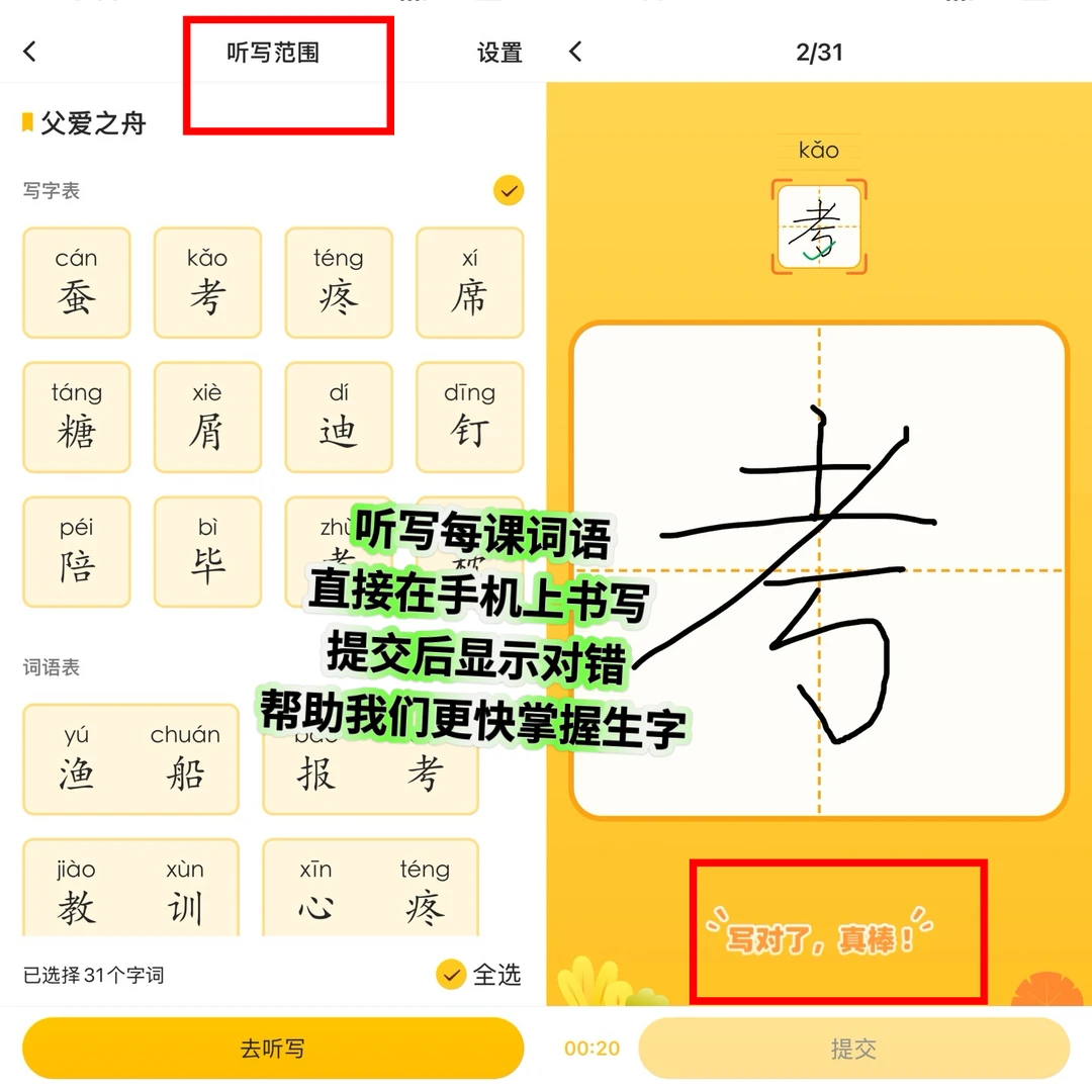 做到每课一听写,每课都要及时掌握。小猿口算的听写是手机自动播报的,并且可以显示对错,节省了家长精力。