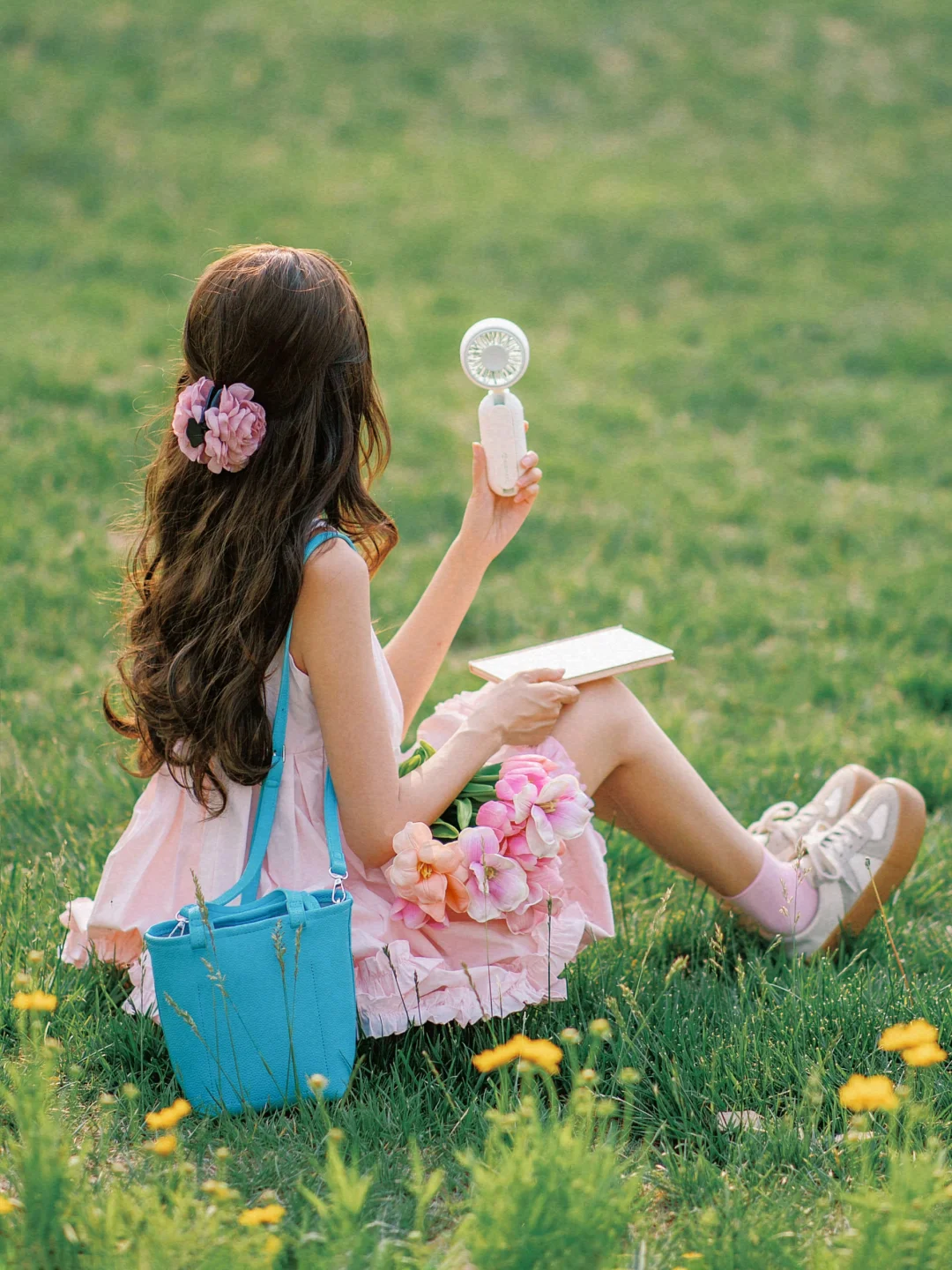 太阳还挺大的就带了艾美特伞夹风宝,一眼就爱上的清新的配色