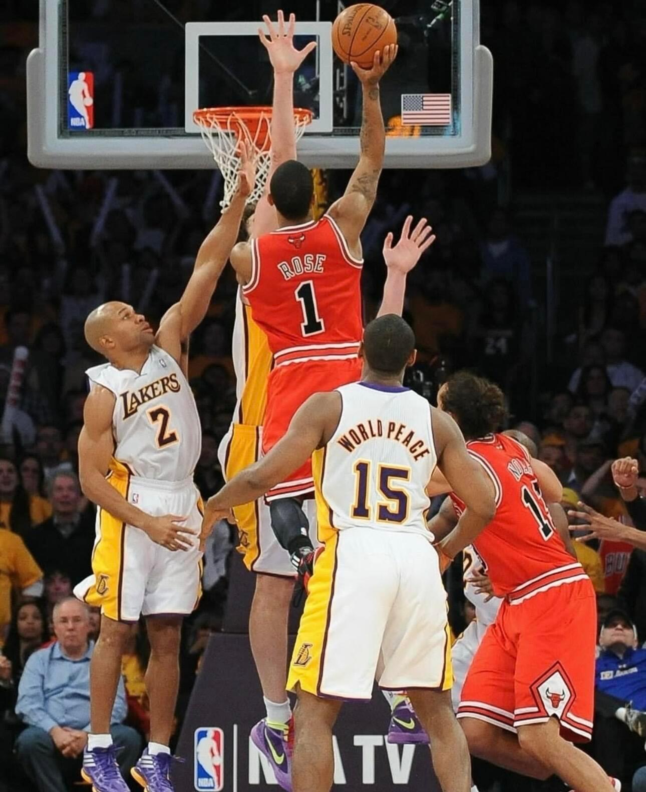 经典图集,2011年NBA圣诞大战,联盟新星罗斯vs湖人科比,罗斯准绝杀湖人。