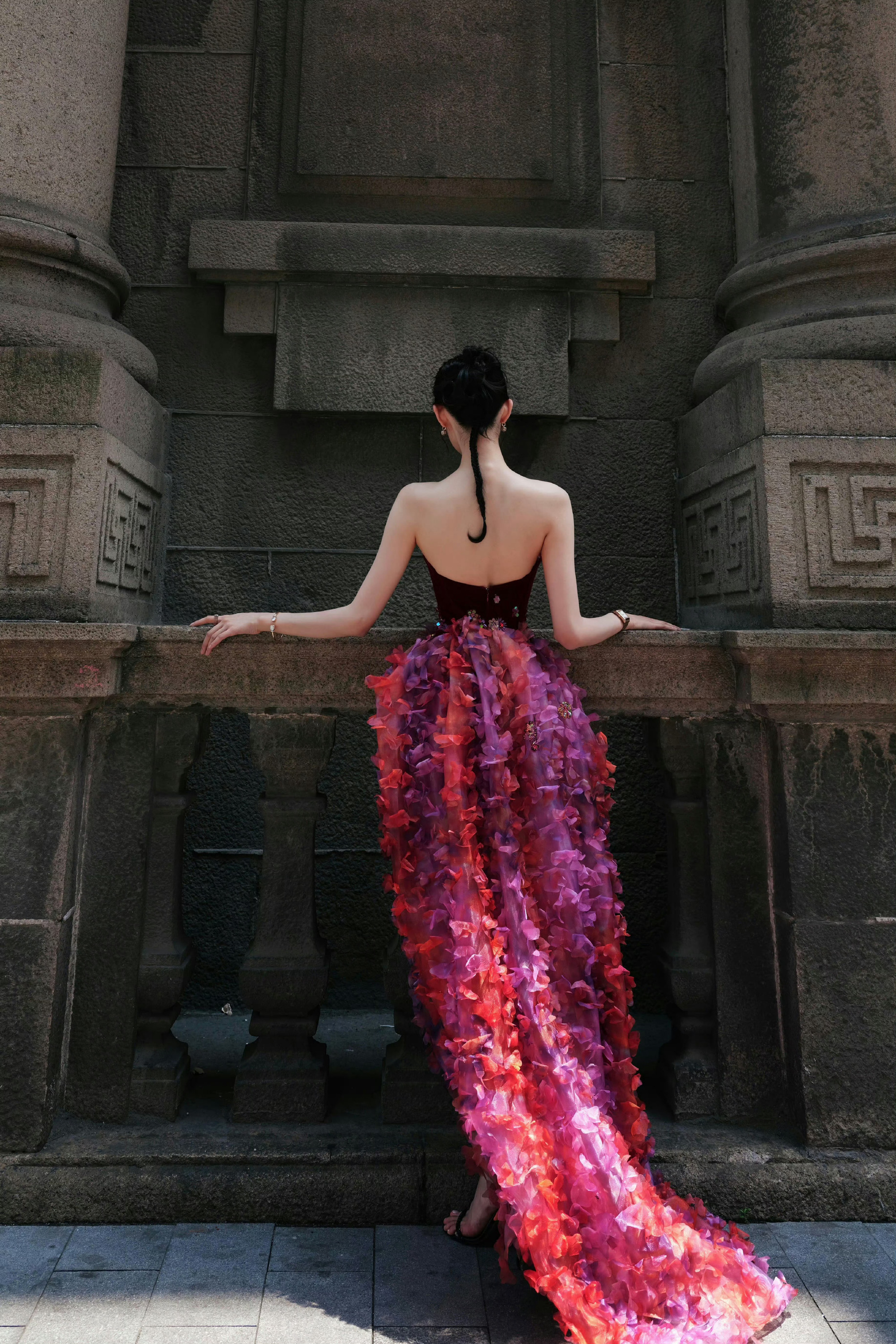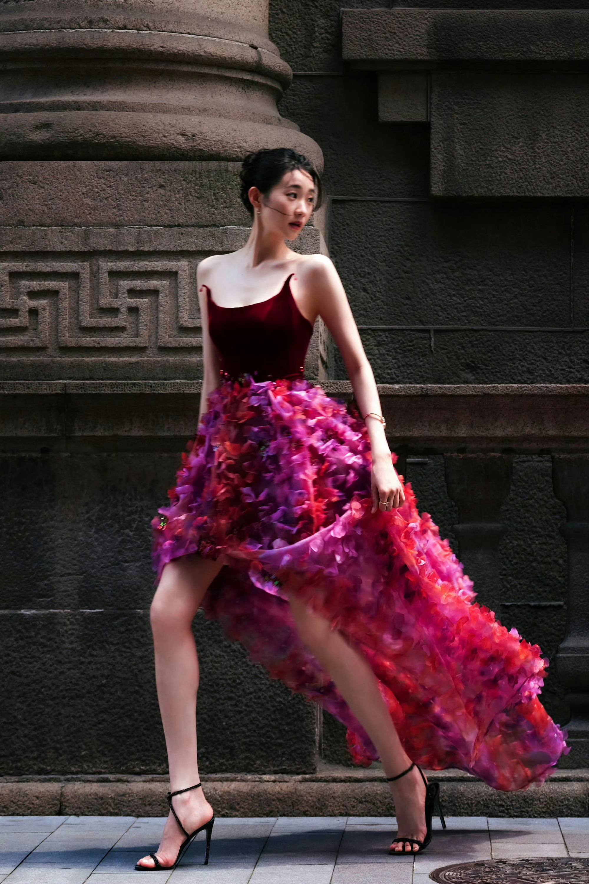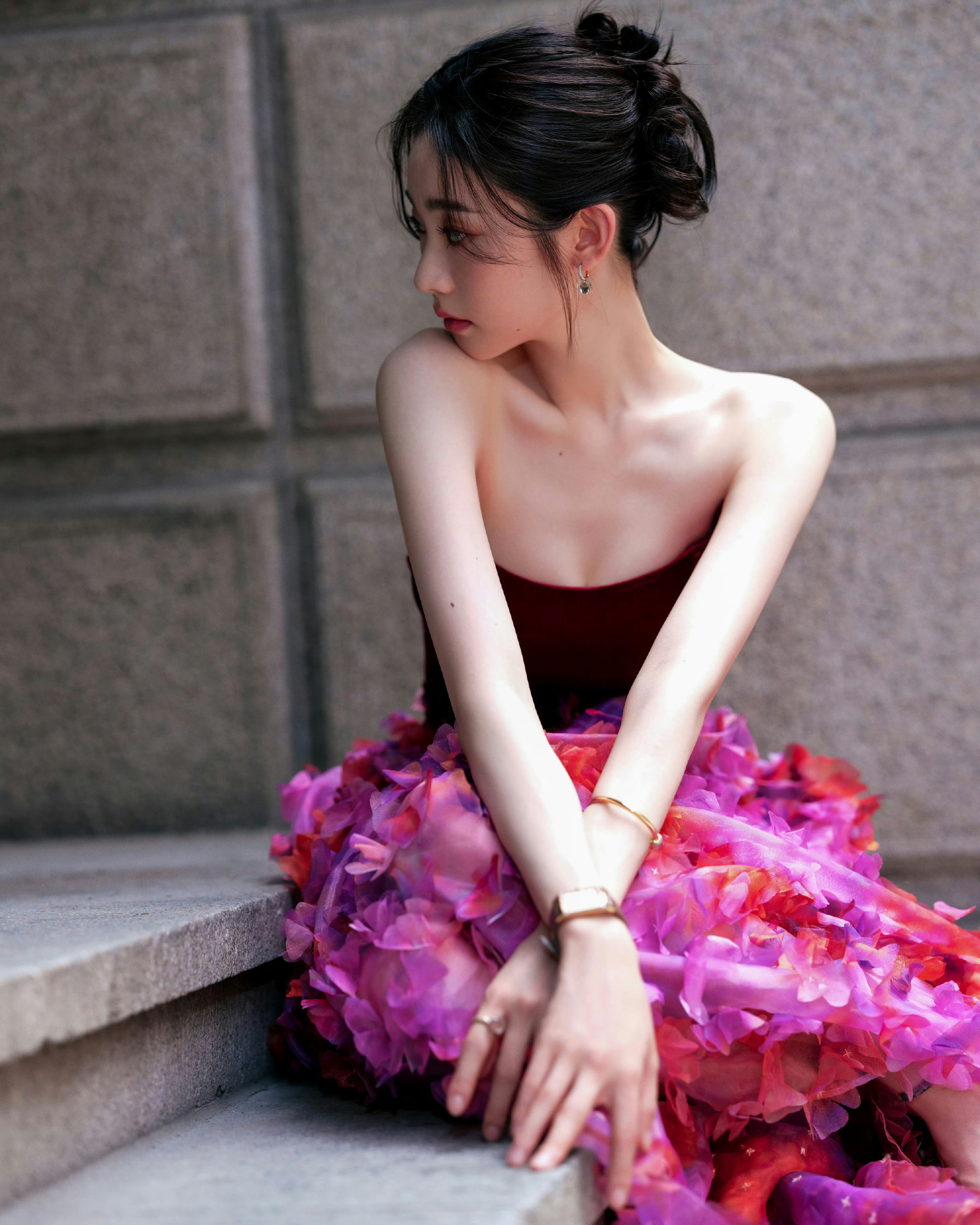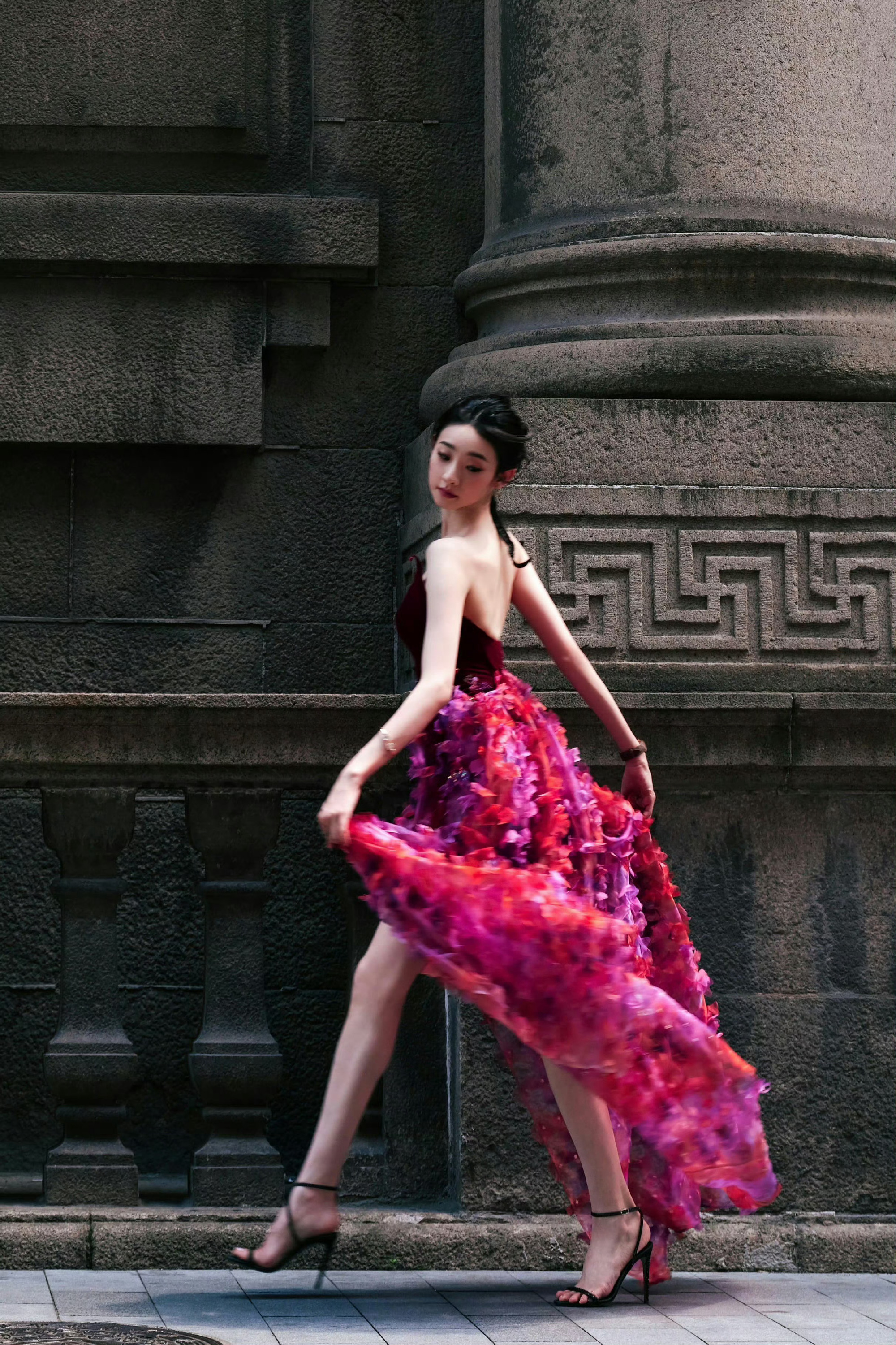 张艺凡,红色花瓣裙大长腿,这少女气质真吸睛。张艺凡