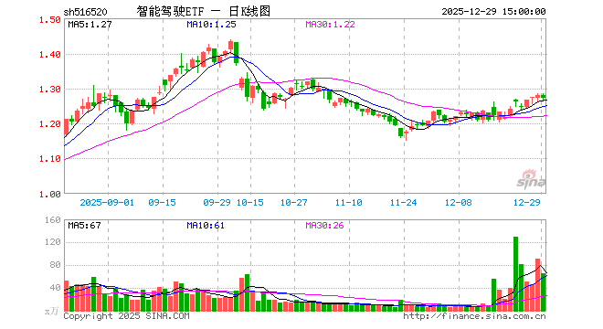 12月29日,智能驾驶ETF(516520)跌0.47%,成交额8344.81万元。当日份额减少1800.00万份,最新份额为4.84亿份,近20个交易日份额增加1.68亿份。最新资产净值计算值为6.16亿元。