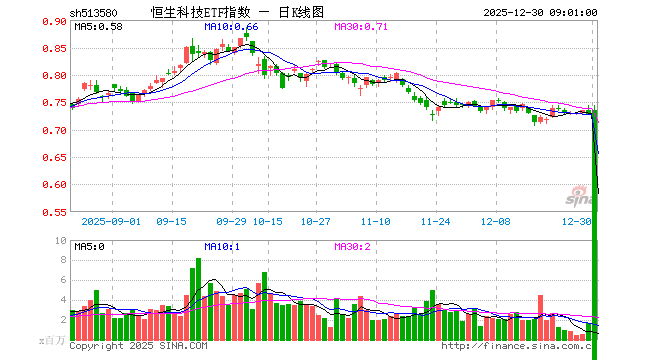 12月29日,恒生科技ETF指数(513580)跌0.95%,成交额1.19亿元。当日份额增加1000.00万份,最新份额为71.28亿份,近20个交易日份额增加8400.00万份。最新资产净值计算值为51.59亿元。