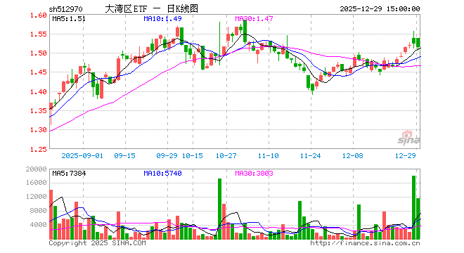 12月29日,大湾区ETF(512970)跌0.53%,成交额175.83万元。当日份额减少100.00万份,最新份额为5798.76万份,近20个交易日份额减少100.00万份。最新资产净值计算值为8803.10万元。