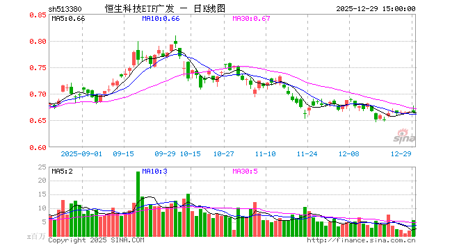 12月29日,恒生科技ETF龙头(513380)跌0.15%,成交额3.83亿元。当日份额增加6300.00万份,最新份额为177.79亿份,近20个交易日份额增加10.00亿份。最新资产净值计算值为117.62亿元。
