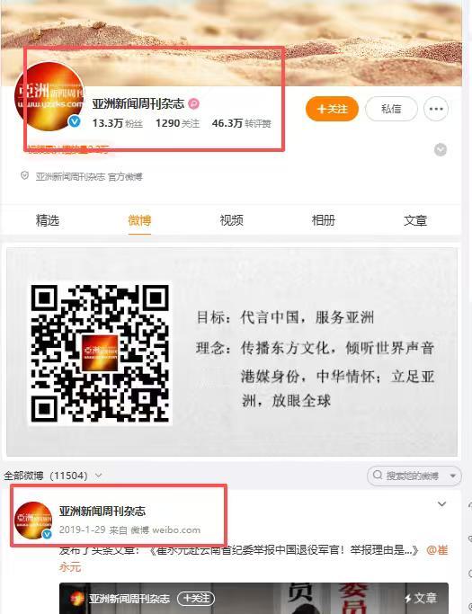 《亚洲周刊》好像从微博上找不到了。 刚开始还在纳闷为什么粉丝量从18万多,在一夜之间就掉到了13万多。 定睛一看,现在只能找到一个叫《亚洲新闻周刊杂志》的号,并且这个号在2019年就停更了。 现在倔强的老编辑连图片都没得发了,经营了这么多年的号,好不容易积累起来18万的粉丝,结果一夜之间回到了起点。 我们还是多关心一下巴拿马和斩杀线吧,这个事件已经剧终!