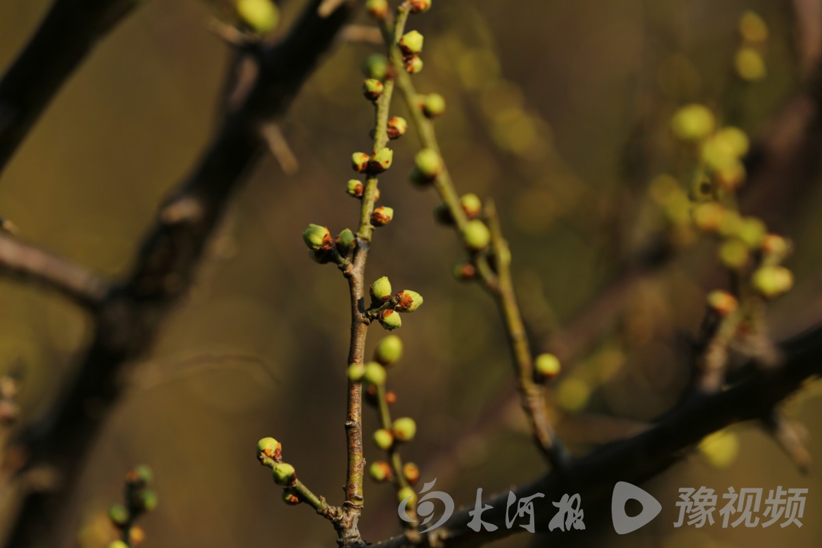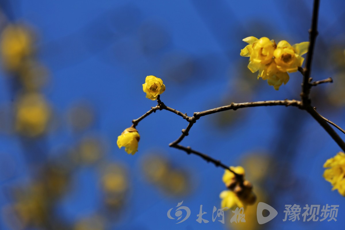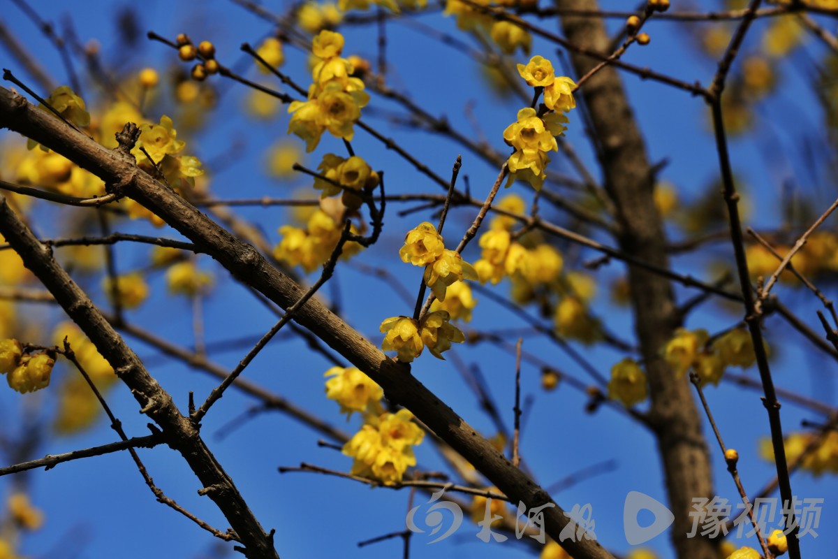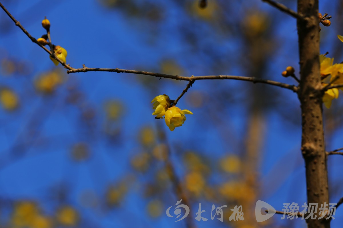 “墙角一枝梅,凌寒独自开;遥知不是雪,为有暗香来。”在位于文昌大道的周口公园,种植在转角处的腊梅同样迎来花期。阳光照耀下,鹅黄的花瓣几近透明,如温润的宝石一般挂在枝头,宛若一幅精心绘制的水墨画卷。