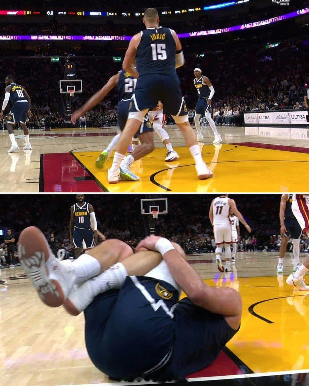 约基奇被队友误伤,提前退出本场比赛…理发师别有事🙏🏼约基奇受伤