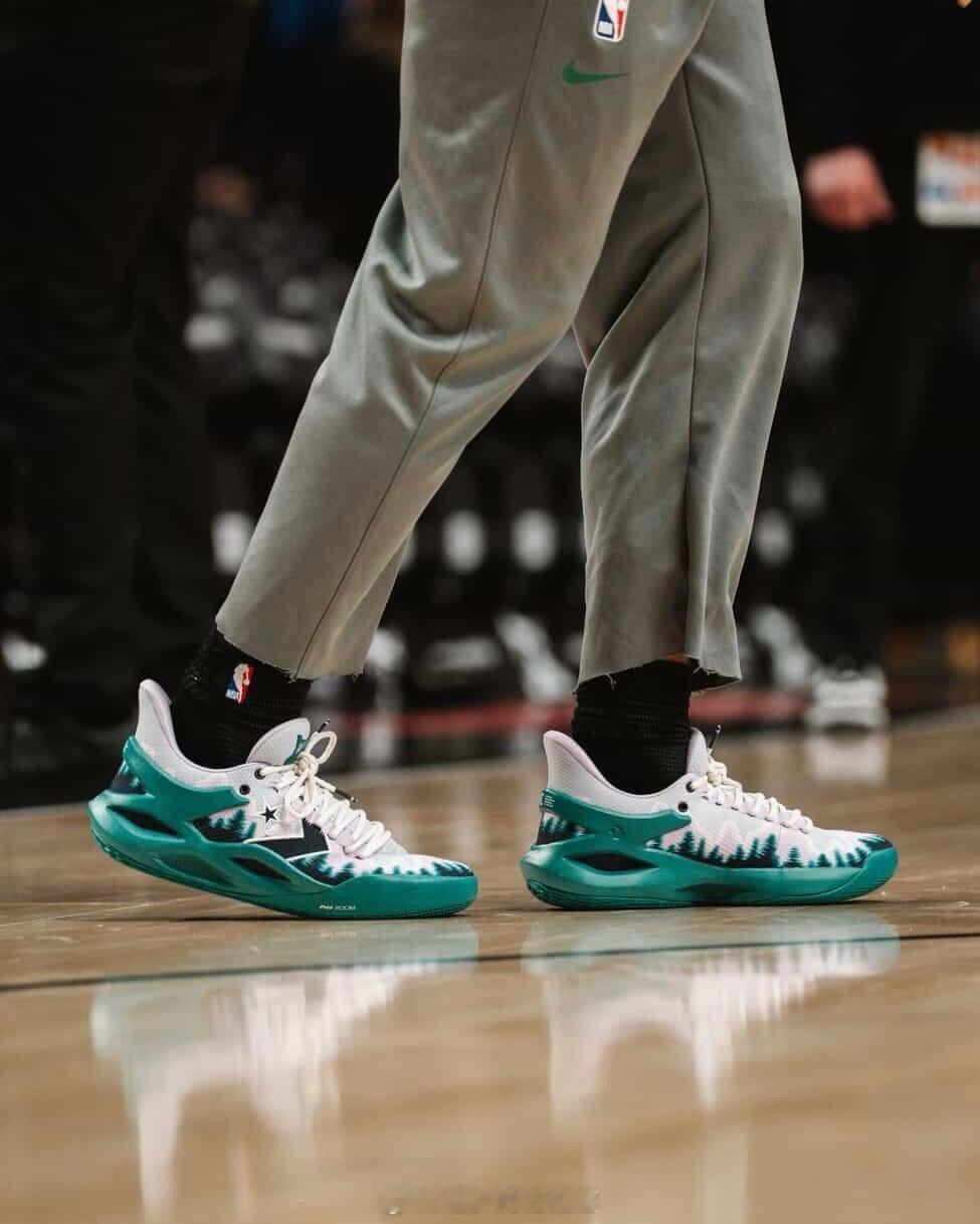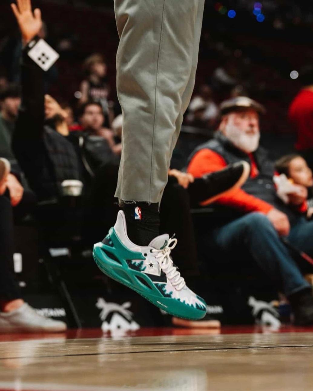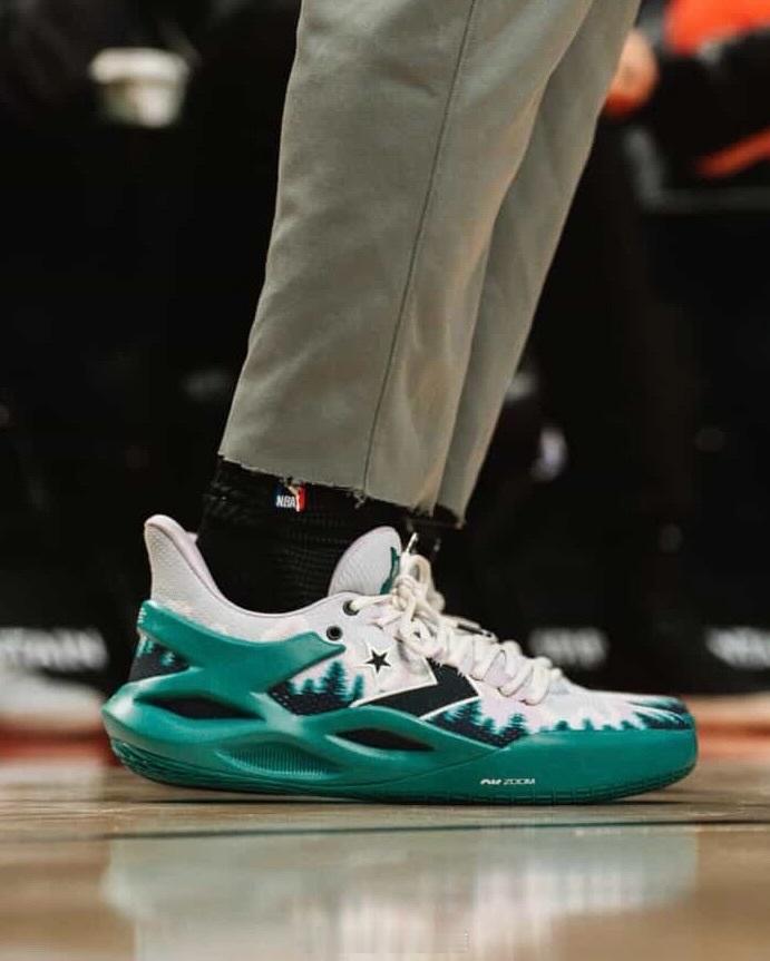佩顿·普里查德昨日上脚了一双匡威BB Trilliant 个人专属款战靴,设计灵感源自他的家乡俄勒冈州。鞋款细节丰富,不仅带有他的“PP”个人标识,鞋垫上“HOME”字样里的字母“O”还被设计成了俄勒冈州的轮廓图案。