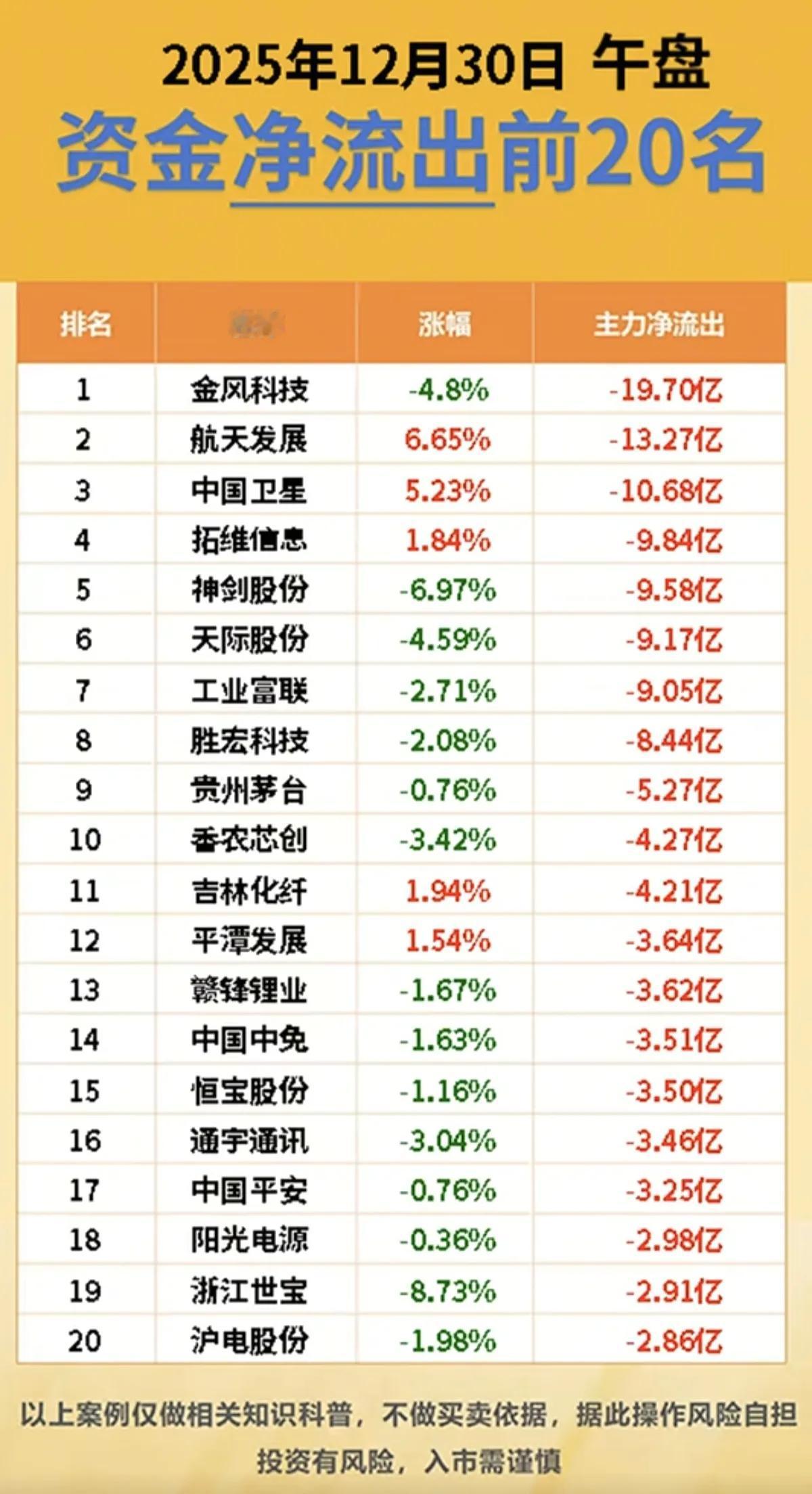 12月30日,周二A股主力资金流入流出图!!! 山子高科主力资金大幅流入超14亿,后市值得高看一眼;N强一主力抢筹11.86亿 后市值得期待;金风科技主力资金大幅流出19.7亿,后市需小心谨慎;航天发展主力资金大幅流出超13亿,后市需注意风险!!!
