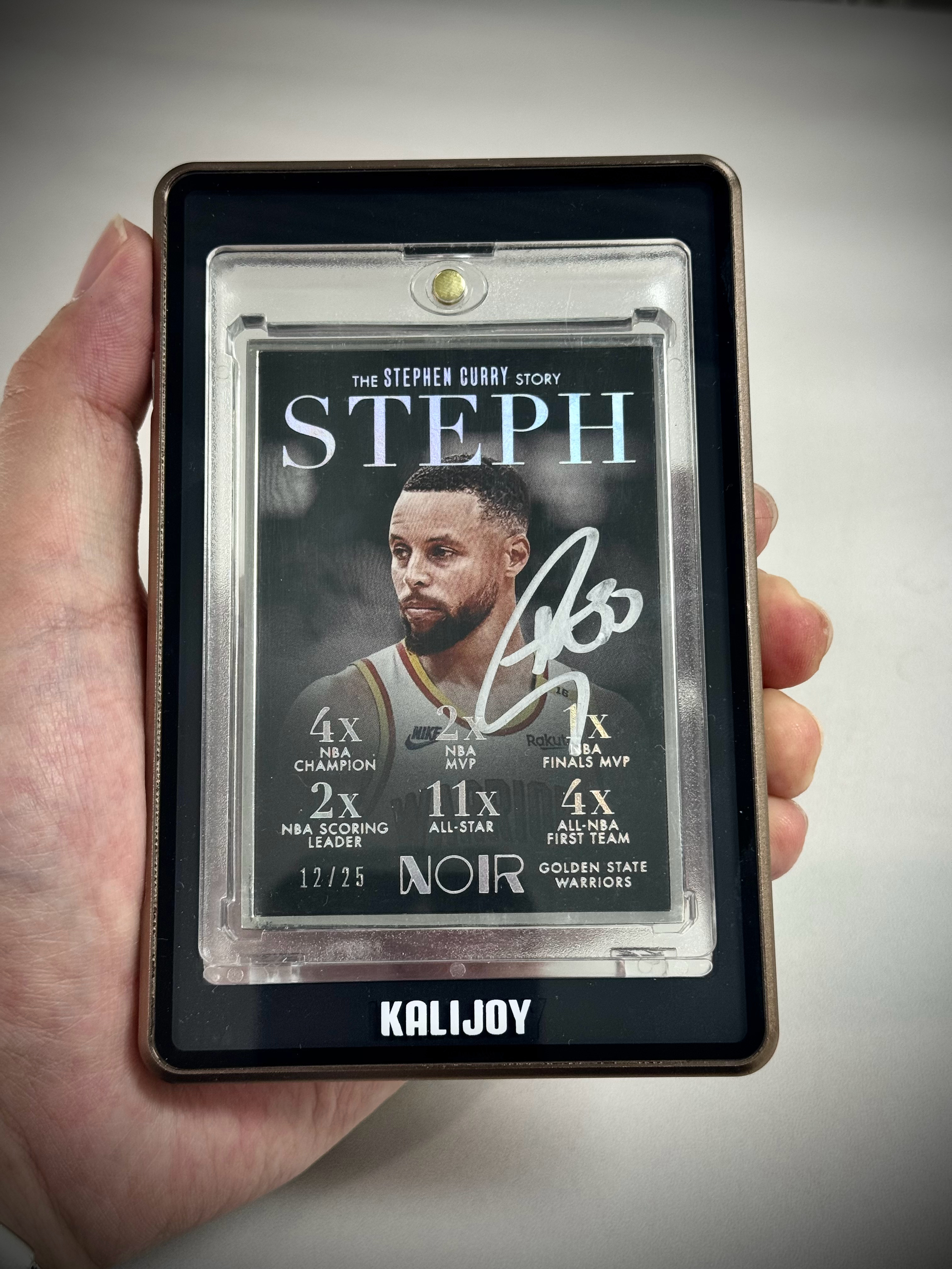 Curry Noir系列传记亲签|签售会💯作品这张24-25赛季Panini Noir系列12/25圣诞编的卡是2025年11月库里签售会的送签作品 在这张目前集合了他职业生涯所有荣誉的卡上用银笔签上了他的名字和背号目前全世界仅此一张,真正的1 of 1我们也记录下了这个瞬间而我很想知道库里他,当时看到这张卡在想些什么呢🤔