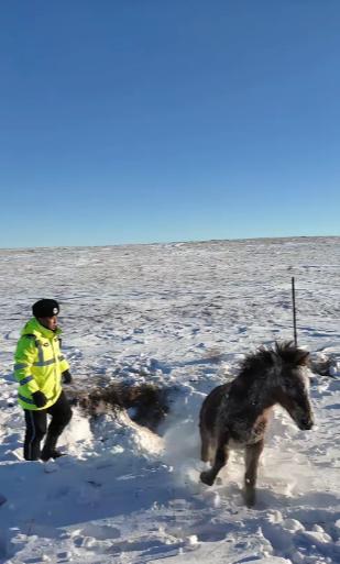 呼伦贝尔,一男子和朋友自驾游,忽然发现一匹马卧在路边雪堆里一动不动,本以为马是冻僵了,结果凑近了才发现,马的后蹄竟然被铁丝围栏紧紧缠住,根本无法挣脱,男子见状当即拿出工具,深一脚浅一脚的奔了过去。 呼伦贝尔的冬天,藏着最纯粹的雪原风光,也藏着刺骨的严寒。最近一位网友分享的自驾经历,没有惊心动魄的剧情,却让无数人感受到了寒冬里的温暖,评论区全是“为善良点赞”的声音。 12月25日,呼伦贝尔气温低至零下40摄氏度,这样的极寒天气里,户外待上几分钟就会让人冻得手脚发麻。 李先生和朋友趁着闲暇时光,开启了一场雪原自驾游,沿途的皑皑白雪和辽阔草原,让两人沉醉在冬日美景中,一路心情都格外舒畅。 就在车子行驶到一段乡间公路时,李先生无意间瞥见路边雪堆里有个深色身影。他放慢车速仔细一看,竟是一匹马卧在雪地里,一动不动。 零下40度的低温,任何生命在户外长时间停留都可能遭遇危险,李先生第一反应就是这匹马大概率是冻僵了,心里顿时揪了起来。 他立刻停下车,跟朋友打了声招呼,就急匆匆地推开车门冲了下去。刚下车,凛冽的寒风就像刀子一样刮在脸上,积雪没到了小腿肚,每走一步都格外费力。李先生深一脚浅一脚地朝着马匹的方向走去,越靠近心里越着急,生怕自己来晚了一步。 走到马匹身边,他才发现事情并不是自己想的那样。这匹马并没有冻僵,而是浑身紧绷,呼吸急促,眼神里满是痛苦和无助。 顺着马匹挣扎的方向看去,李先生的心瞬间沉了一下,原来马的后蹄被路边的铁丝围栏紧紧缠住了,铁丝深深嵌入皮肉,周围的毛发都被血渍浸染,在白雪的映衬下格外刺眼。 想来这匹马是不小心撞进了铁丝围栏,挣扎间反而让铁丝缠得更紧,时间一长体力耗尽,只能卧在雪地里等待救援。若是再没人发现,要么会因伤口感染引发更严重的问题,要么会在极寒天气里被冻伤,甚至可能失去生命。 李先生没有丝毫犹豫,立刻转身跑回车上,从后备箱里翻出提前准备好的应急工具刀。再次返回马匹身边时,他特意放慢了脚步,尽量放轻动作,生怕自己的举动吓到这只已经受了伤的生灵。 马匹似乎感受到了他的善意,原本紧绷的身体稍微放松了一些,只是偶尔发出几声低沉的嘶鸣,像是在诉说着痛苦。 由于铁丝缠得太紧,又结了一层薄冰,切割起来格外费力。李先生蹲在雪地里,一手按住铁丝防止滑动,一手握紧工具刀慢慢切割。 寒风不断吹袭,他的手指很快就冻得僵硬发麻,操作起来越来越困难,只能时不时停下搓搓手哈口气,稍微缓解一下再继续。朋友也赶了过来,在一旁帮忙扶住马匹,避免它因疼痛挣扎影响救援。 经过十几分钟的努力,缠绕在马后蹄上的铁丝终于被成功剪断。失去束缚的马匹并没有立刻起身,而是在雪地里缓了好一会儿,才慢慢抬起头,试探着活动了一下后蹄。 确认伤口没有大碍后,它缓缓站起身,朝着李先生和他的朋友甩了甩尾巴,像是在表达感谢,随后慢慢走进了旁边的草原深处。 看着马匹渐渐远去的身影,李先生和朋友才松了口气,两人的手脚早已冻得通红,却丝毫感觉不到寒冷。李先生把这段救援经历拍成短视频发到网上后,很快就引发了全网关注。 网友们纷纷为他的善良和勇敢点赞,有人说“零下40度的寒冬,因为你的举动变得温暖”,也有人感慨“动物的生命同样值得被尊重,为这份善意点赞”。 李先生的举动,也让更多人关注到了冬日里野生动物的生存状况。不少网友表示,以后在户外遇到类似的情况,只要有能力,也会选择伸出援手。这份善意的传递,就像寒冬里的一束光,温暖着每一个人的心房。 对此,你们有什么看法,欢迎评论留言~
