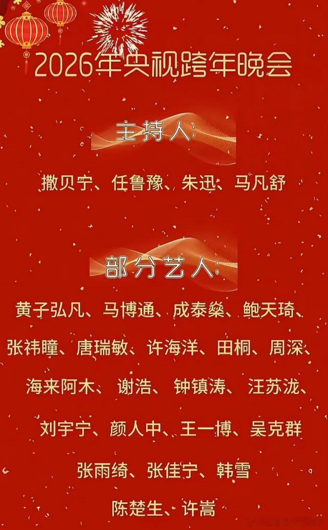 央视跨晚节目单央视跨晚网传节目单来啦!山河为幕,星光集结待启航✨吕梁主会场联动三地分会场,非遗打铁花碰撞AR科技,五岳文脉交织流行旋律~ 周深、汪苏泷、黄子弘凡、关晓彤、邓为、宋威龙等人有你期待的吗?网传央视跨晚节目单