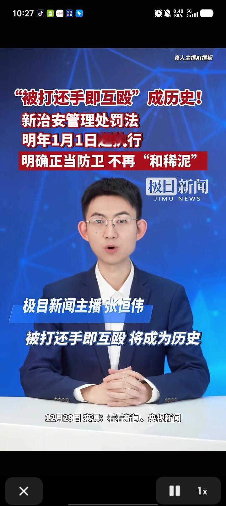 大快人心!被打10个耳光不还手?新规来了:还手不算互殴!以前遇到有人欺负你,你不还手吧,心里憋屈;你还手吧,警察来了可能还说“互殴”,俩都得挨罚,这叫啥事儿啊! 就说上海地铁那事儿吧:一男的被女的扇了10个耳光,愣是没还手,结果女的被拘了,男的啥事儿没有。为啥?因为“还手即互殴”的老规矩!可现在不一样了——2026年1月1日起,新修订的《治安管理处罚法》就要施行,被打还手不再算互殴,正当防卫有了明确标准,再也不用“认怂”了! 新规三大核心要点,老百姓也能看懂: 1. 时间要件:必须是“正在被打时”还手!打完了再反击,算“事后报复”,还是得担责。 2. 对象要件:只能打“打你的人”!不能因为对方人多,就找他家人朋友撒气,不然也算“扩大矛盾”。 3. 程度要件:别下死手,但也别光站着挨揍!比如对方拿棍子打你,你用板凳挡一下,不算“防卫过当”;但对方已经跑了,你还追上去打,就不行了。 举个例子你就懂了: 以前餐馆老板娘被醉酒顾客三次打倒在地,拿啤酒瓶反击,结果被认定“互殴”拘了;现在按新规,这就是正当防卫!因为当时是“正在遭受不法侵害”,对象是施暴者本人,手段也没明显超过必要限度,完全不用担责! 总结一下: 以后再遇到有人欺负你,别再憋着了!只要是“正在打你时”,针对“打你的人”,用“不过分”的手段反击,这就是合法的正当防卫,不用再怕“和稀泥”! 咱老百姓就认一个理:谁违法谁担责,谁欺负人谁倒霉! 新治安管理处罚法 正当防卫 老百姓的法律撑腰