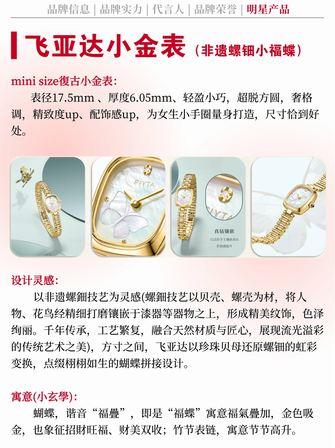 [买爆R] 明星产品:飞亚达小金表(非遗螺钿小福蝶)、飞亚达柿柿如意宋瓷款、东方美人苏绣款。