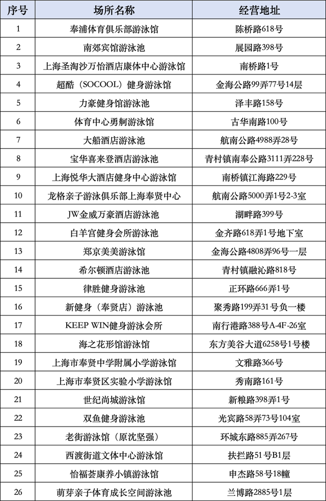 奉贤区温水游泳池开放信息