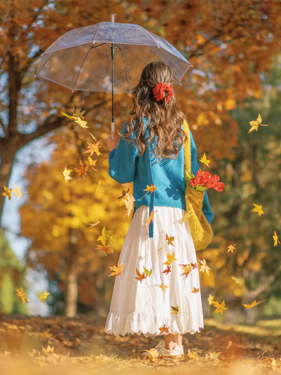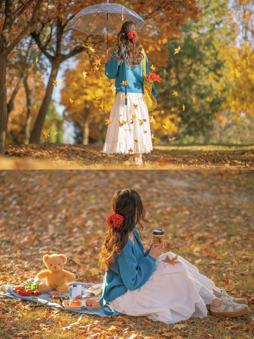 🍁 提前收藏一些秋日落叶拍照姿势吧 即使不露脸也能get满满的氛围感 深秋公园飘落的秋叶,搭配一把透明伞 伞里飘落的叶子,直接把秋日电影感拿捏啦 快艾特你的拍照搭配,一起去拍秋天吧~ 🎨 调色:🌟图 滤镜:烈日+35% 调节: ◽️自动调节:+60 ◽️光感:+15 ◽️色彩层次:+20 ◽️HSL:红色饱和度-15 ◽️高光:-20 ◽️阴影:+50 ◽️色温:+15 ◽️色调:-29 ◽️细节层次:+70 参数不是固定的,需要根据实际情况微调噢~